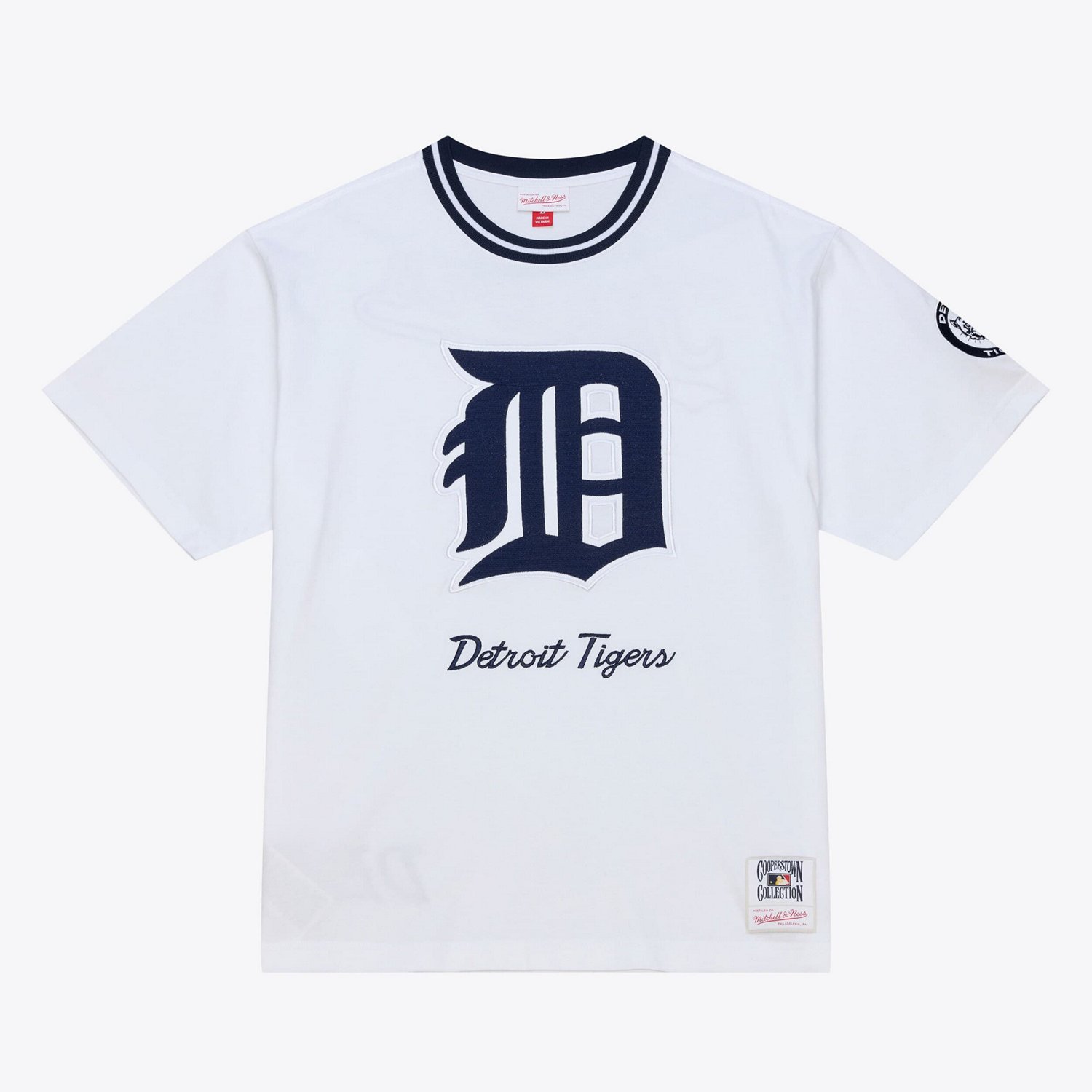 Show your unwavering support for the Detroit Tigers with this Mitchell Ness Cooperstown Collection Arctic T-Shirt Featuring embroidered fabric applique graphics this shirt delivers a vintage-inspired look that honors the team's storied past The 100 Cotton provides a comfortable feel perfect for cheering on your team from the stands or enjoying a casual day out With its classic design and durable construction this Mitchell Ness T-shirt is a must-have for any die-hard Detroit Tigers fan