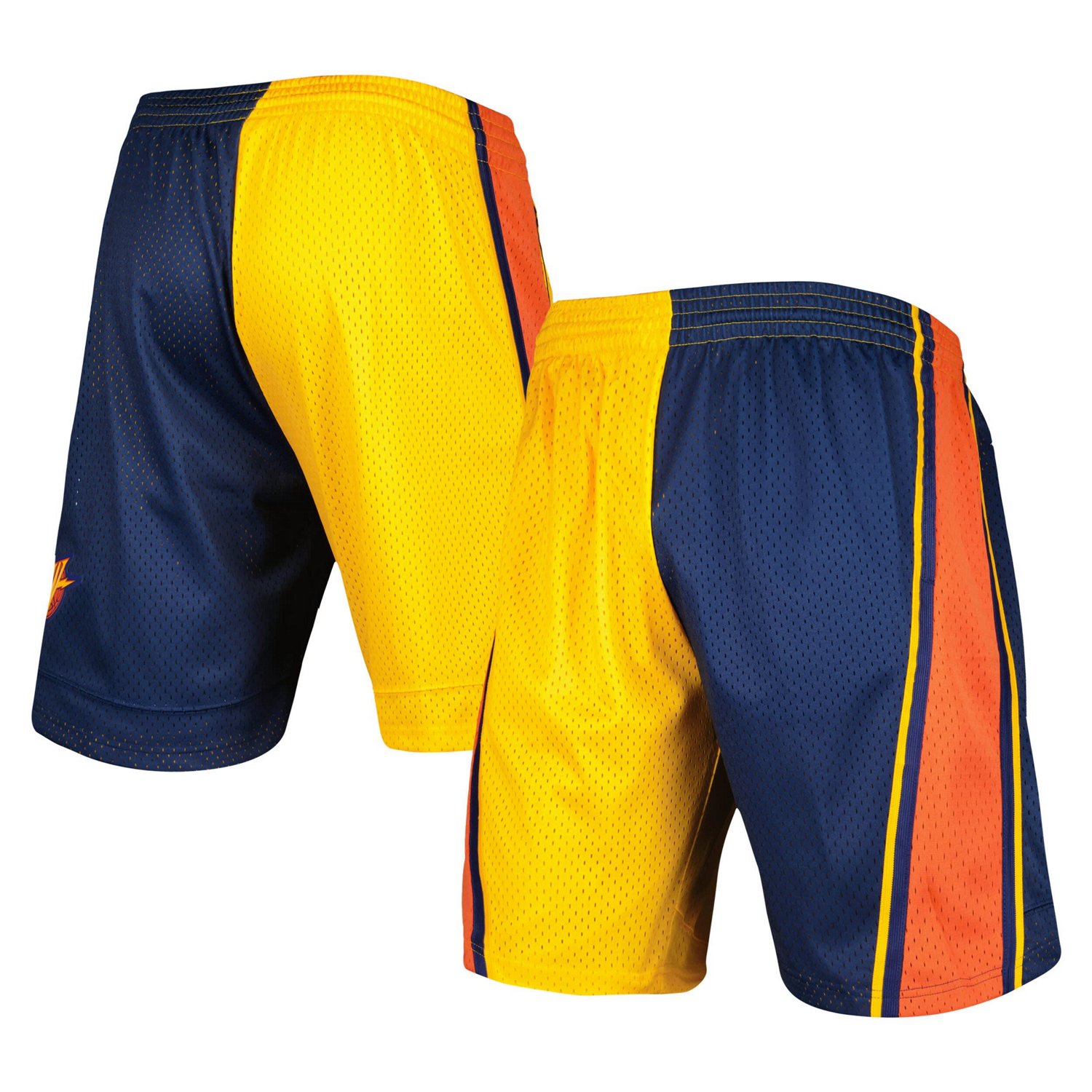 Your Golden State Warriors allegiance is easy to spot each time you sport these Mitchell Ness Split Swingman shorts Mesh fabric keeps you cool around the clock while side pockets conveniently hold your essentials A bold 2009 Hardwood Classics design with vintage Golden State Warriors colors and graphics show you're no casual fan