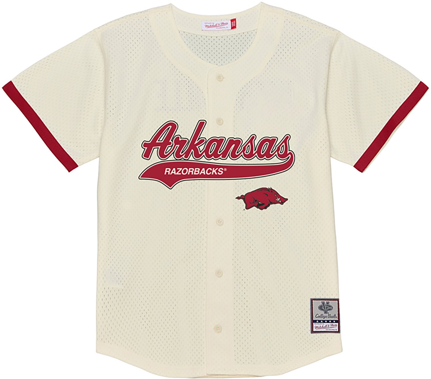 Mitchell & Ness Men’s University of Arkansas Mesh Button Front Baseball Jersey