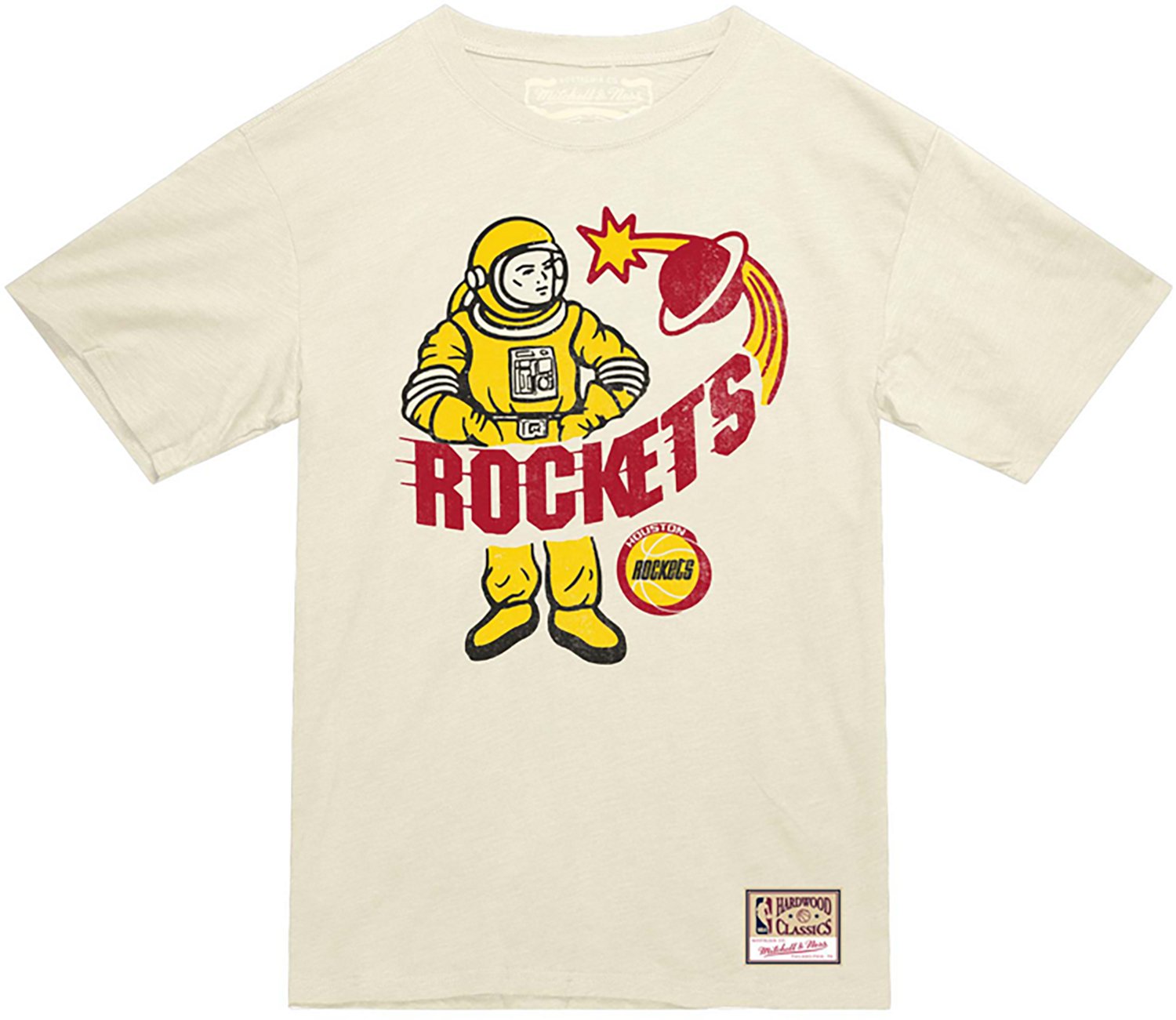 Gear up for game day with the Mitchell & Ness Men's Houston Rockets Astronaut Graphic T-shirt. The cotton material provides a comfortable feel, while the graphic design shows off your Rockets pride.