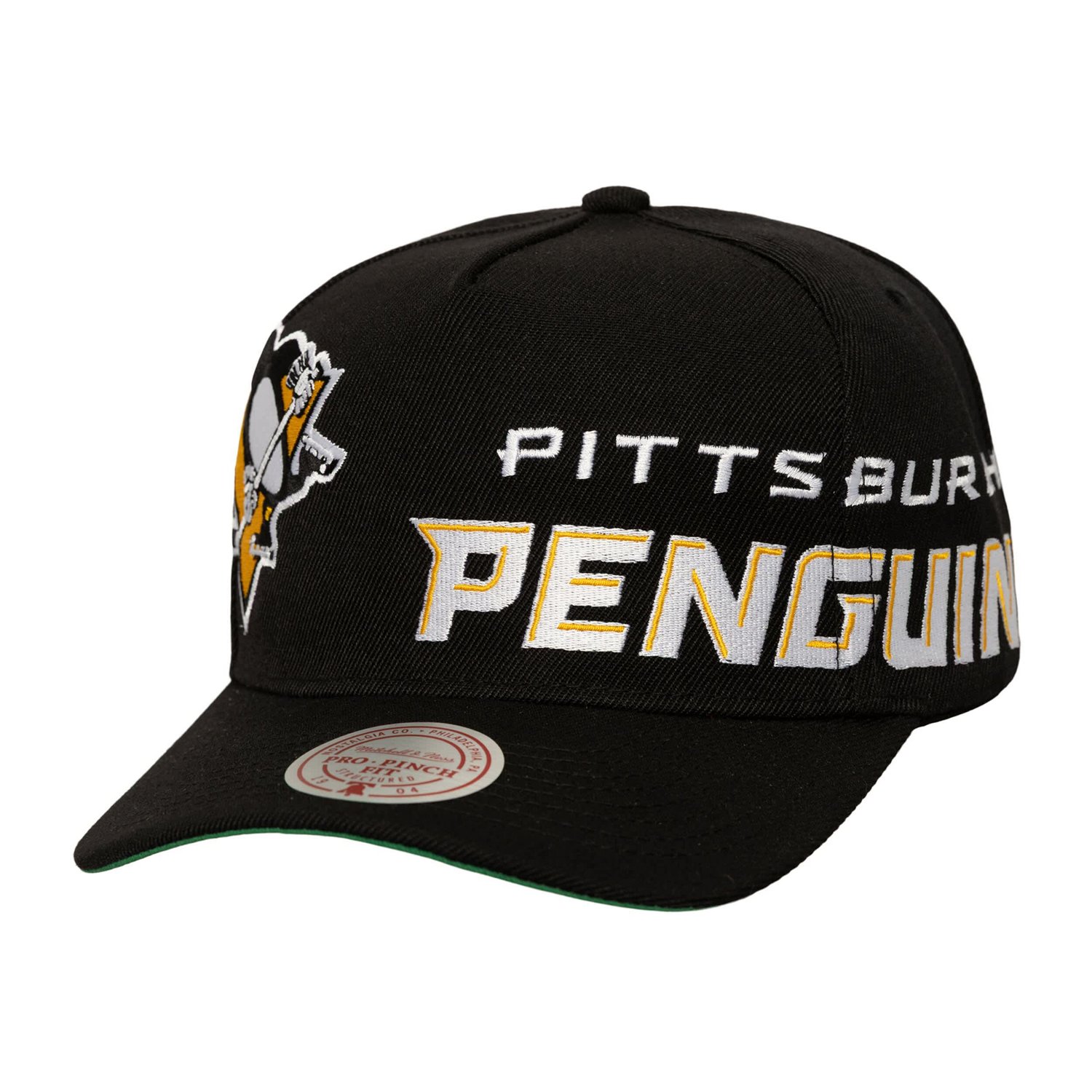 Showcase your Pittsburgh Penguins loyalty with this Busted Logo Wordmark Wrap-Around Pro Pinch Adjustable Hat from Mitchell NessThis hat features a unique pinch fit design with a tapered front giving it a sleek and contoured look that sets you apart from the crowd The embroidered team logo and wrap-around wordmark boldly display your Pittsburgh Penguins pride