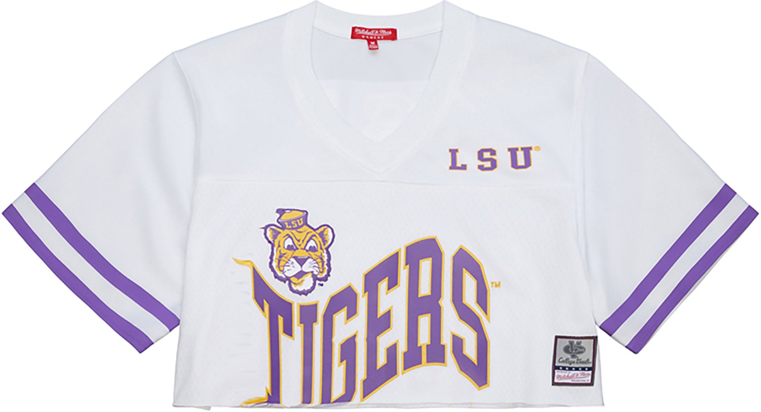 Show your support in style with the Mitchell & Ness Women's Louisiana State University Tigers Cropped Fashion Short Sleeve Jersey. The cotton fabric is soft and breathable, and the screen-printed team graphic is durable and colorful.