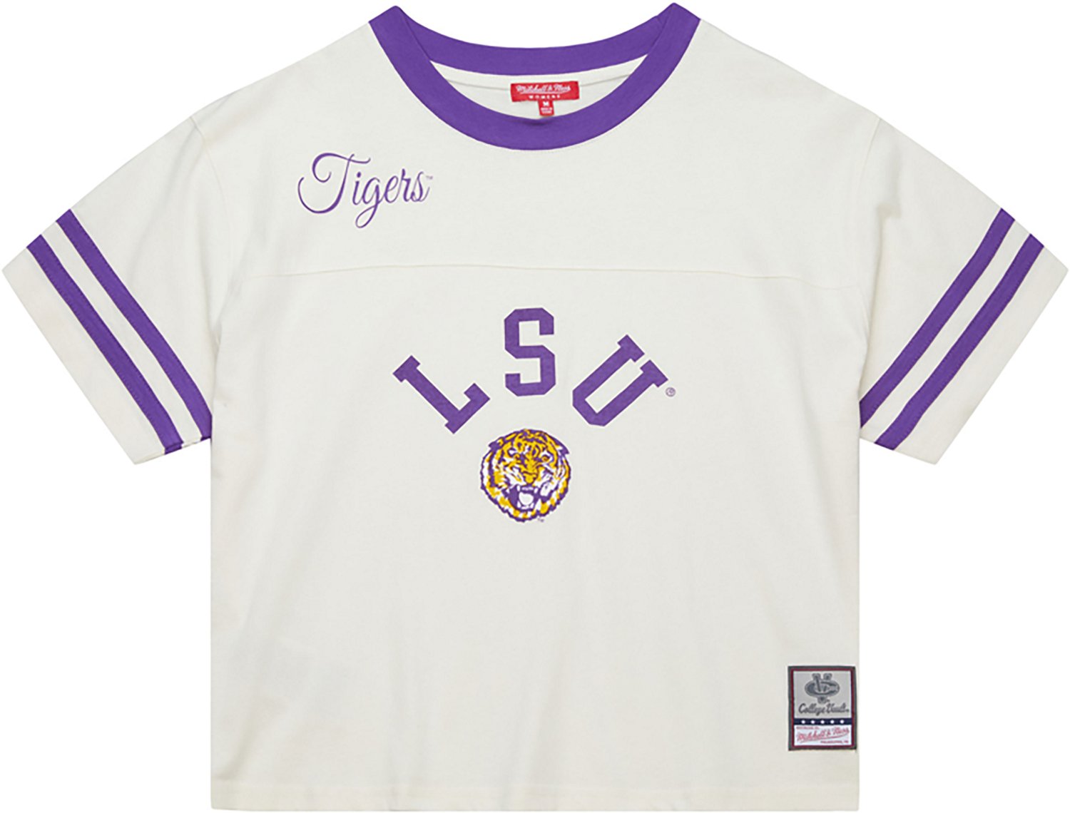 Mitchell & Ness Women's Louisiana State University Tigers Cropped Yoke Short Sleeve T-shirt