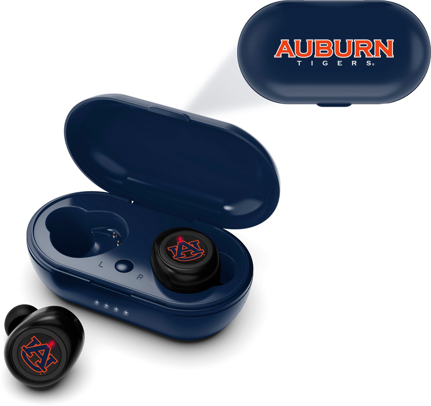 Listen to your favorite tunes or take calls with the Mizco Auburn University True v.2 Wireless Earbuds. These earbuds feature Bluetooth® technology for easy connectivity to your wireless devices, and the team design puts your Tigers fandom on display for all to see.