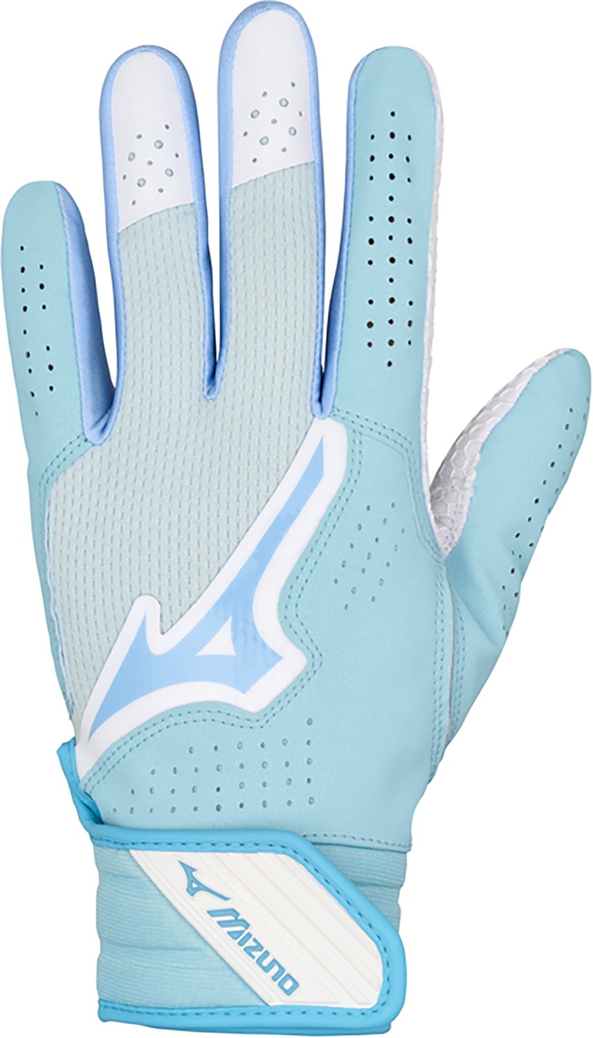 Hit a home run with the Mizuno Finch Softball Batting Glove. The nylon blend provides a comfortable feel, while the padded ShockPalm absorbs vibration offers additional comfort. The FlexMesh back improves breathability and flexibility.