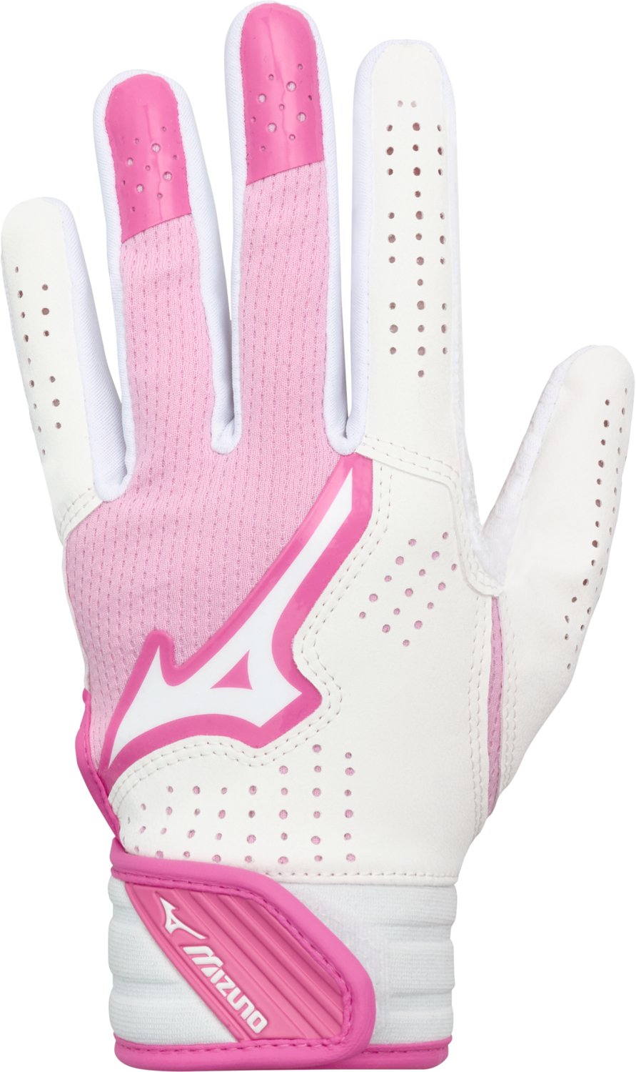 Hit a home run with the Mizuno Girls’ Finch Softball Batting Glove. The nylon blend provides a comfortable feel, while the padded ShockPalm absorbs vibration offers additional comfort. The FlexMesh back improves breathability and flexibility.