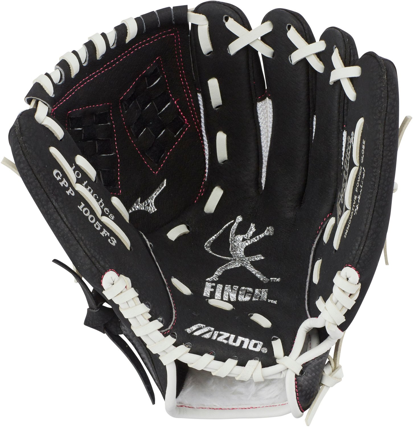 The Mizuno Girls' Prospect Finch Series 10 in Softball Glove is designed to help you grow as a player and cultivate a love of the game just like Jennie Finch. This softball mitt is designed with PowerClose technology to make catching easier for younger players, with Less 2 Lacing to increase flexibility along the closing axis. The Parashock palm pad and ButterSoft palm liner give a comfortable feel that absorbs the impact of the ball, so the glove is easy to wear the whole game.