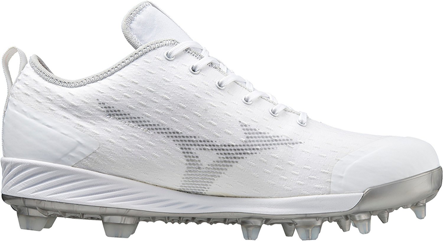 Dominate the field with the Mizuno Men's Dominant 4 Baseball Cleats. The woven knit uppers provide a soft, natural fit, while the full-length EVA midsoles deliver cushioned comfort. The Mizuno C-Flex outsoles and I-Shaped TPU studs work together to give you improved stability, flexibility and traction.