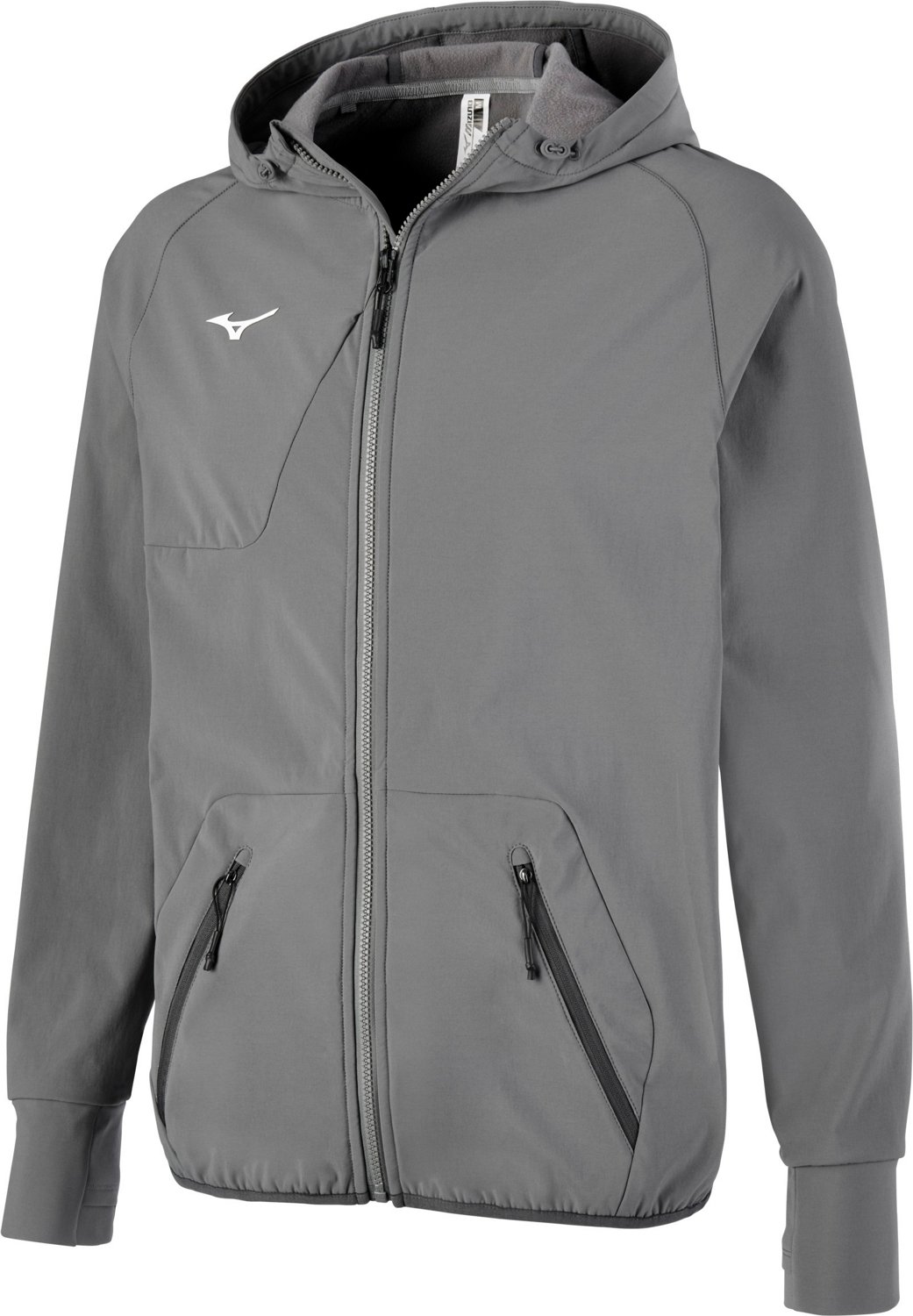 Warm up in style and comfort in the Mizuno Men's Power Warm-Up Jacket. The full-length zipper allows this jacket to be easily removed, and the attached hood with drawstring helps keep body heat in.