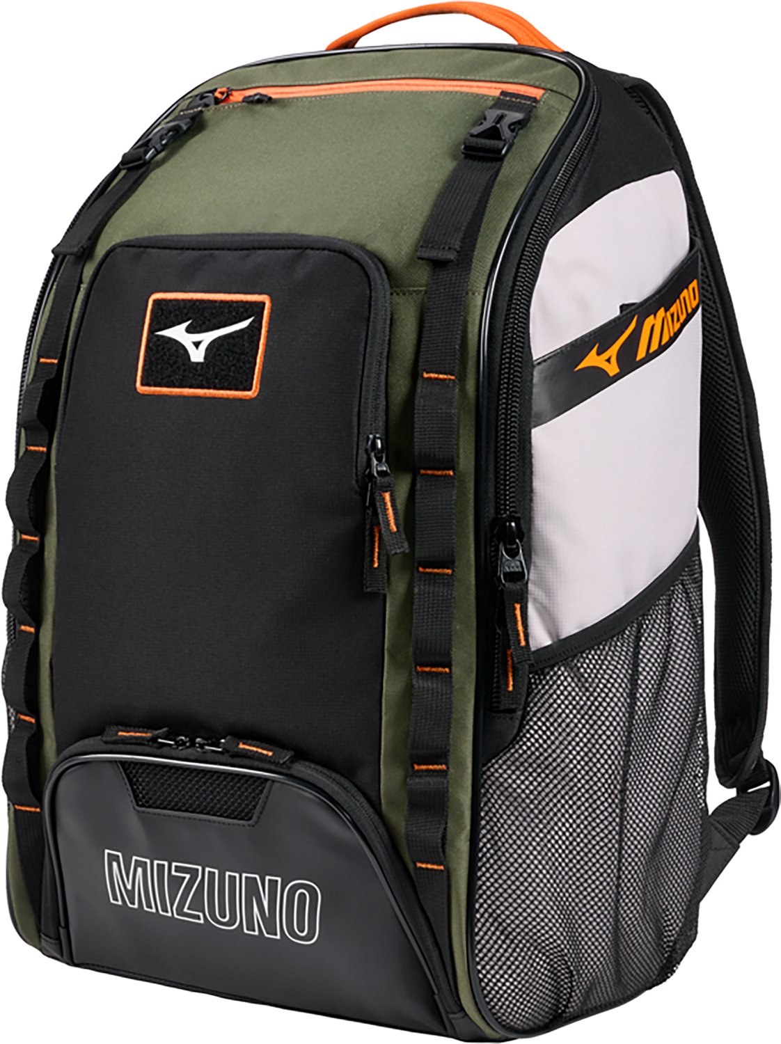 Carry your gear around in the Mizuno Organizer 26 White Backpack. Its polyester material enhances durability. The large main compartment with an organizer allows you to store all of your equipment, and its ventilated footwear storage compartment separates your shoes from rest of bag to protect your shoes. The 4 bat sleeves allow you to store multiple bats or use as an additional water bottle pouch.