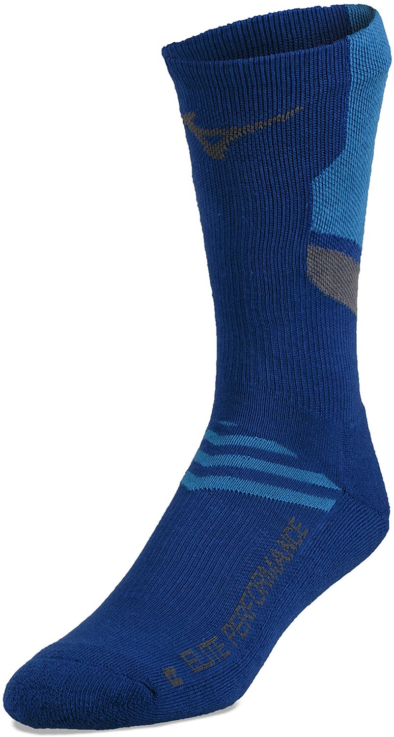 Keep your feet comfortable by wearing the Mizuno Volleyball Runbird Crew Socks. The padded heels and forefeet protect your feet from impacts, while the gripper tops create a secure fit to prevent slipping. The side-specific fit offers additional comfort and stability for the whole day.