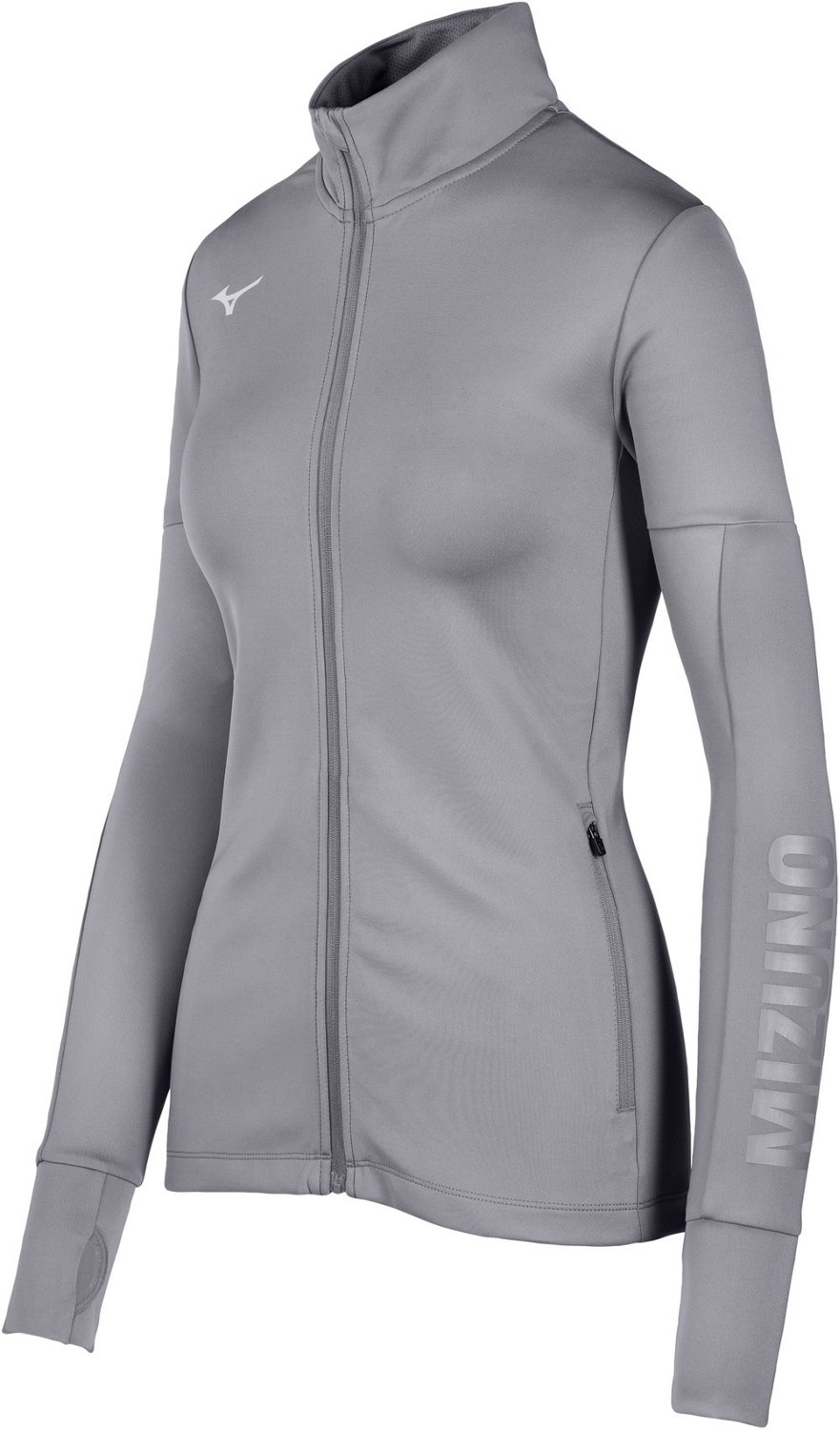 Stay comfortable whether you're training or relaxing in the Mizuno Women's Alpha Quest Jacket. This jacket is made of a soft polyester-spandex blend for all-day comfort and has long sleeves with thumb holes. The Mizuno branding on the sleeve adds a stylish touch.