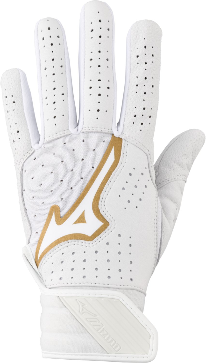 Protect your hand while batting with the Mizuno Women's Pro Select Fastpitch Softball Batting Glove. This sheepskin leather glove has padding on the palm for a protective layer of cushioning and has perforations on the back to help keep your hand cool. The neoprene wristband supports your wrist and is adjustable for comfort.