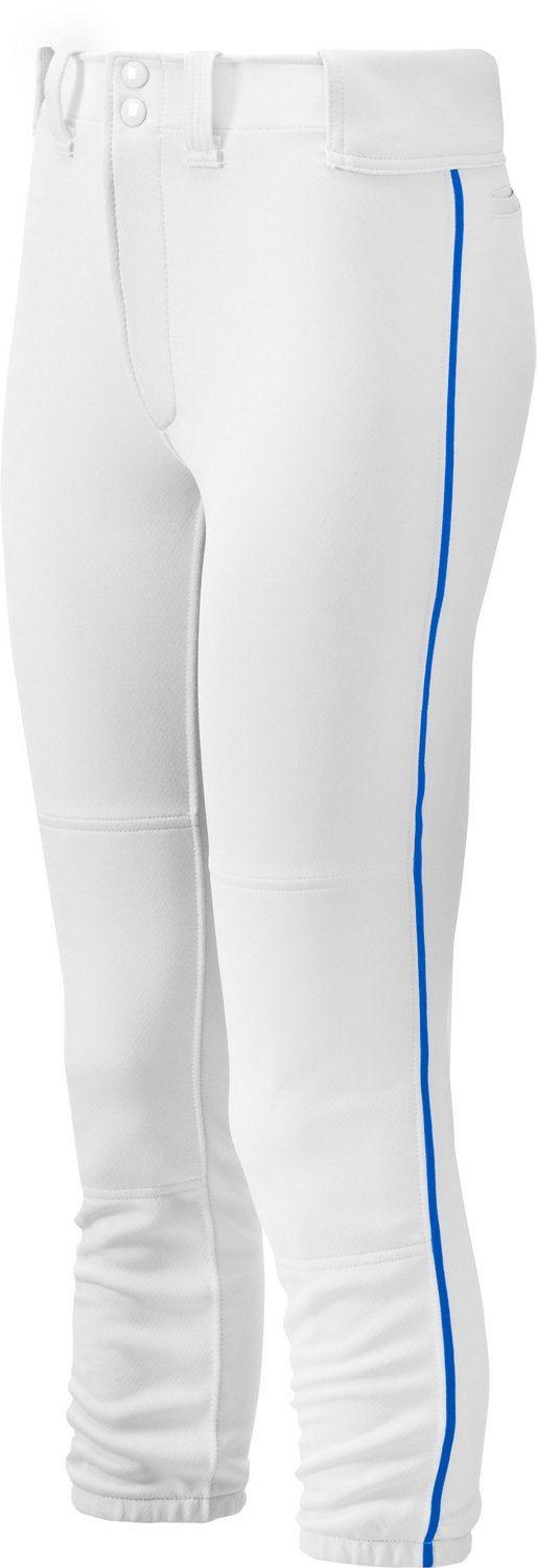 When the bases are loaded, you need to be able to perform your best. Play in comfort while wearing the Mizuno Women's Select Belted Piped Softball Pant, which has built-in protective padding for those slides across home plate. Reinforced at the knees to minimize wear, this low-rise pant has set-in back pockets and piping down the side for style.