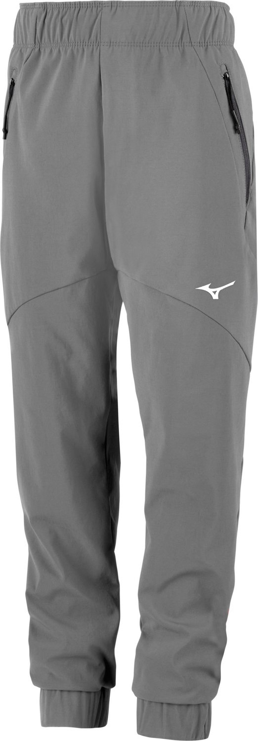 The Mizuno Youth Power Warm-Up Pants offer customized comfort. The elastic waistband and drawstring ensure a secure and comfortable fit, and the side seam zippered pockets are ideal for storing smaller belongings.