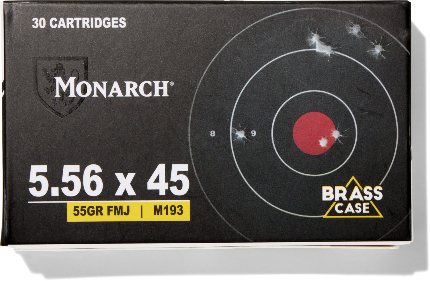 Head into the field with the Monarch 5.56x45mm 55gr Full Metal Jacket Centerfire 30-Round Pack. The 5.56mm caliber rounds have a 55-grain weight, and the 30 rounds feature brass cases.