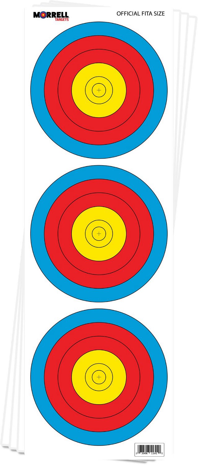 Practice your sharpshooting skills with the Morrell FITA Recurve Paper Face Archery Target 100-Pack. This 100-pack of official-size targets is made of heavy stock paper that stands up to frequent use.