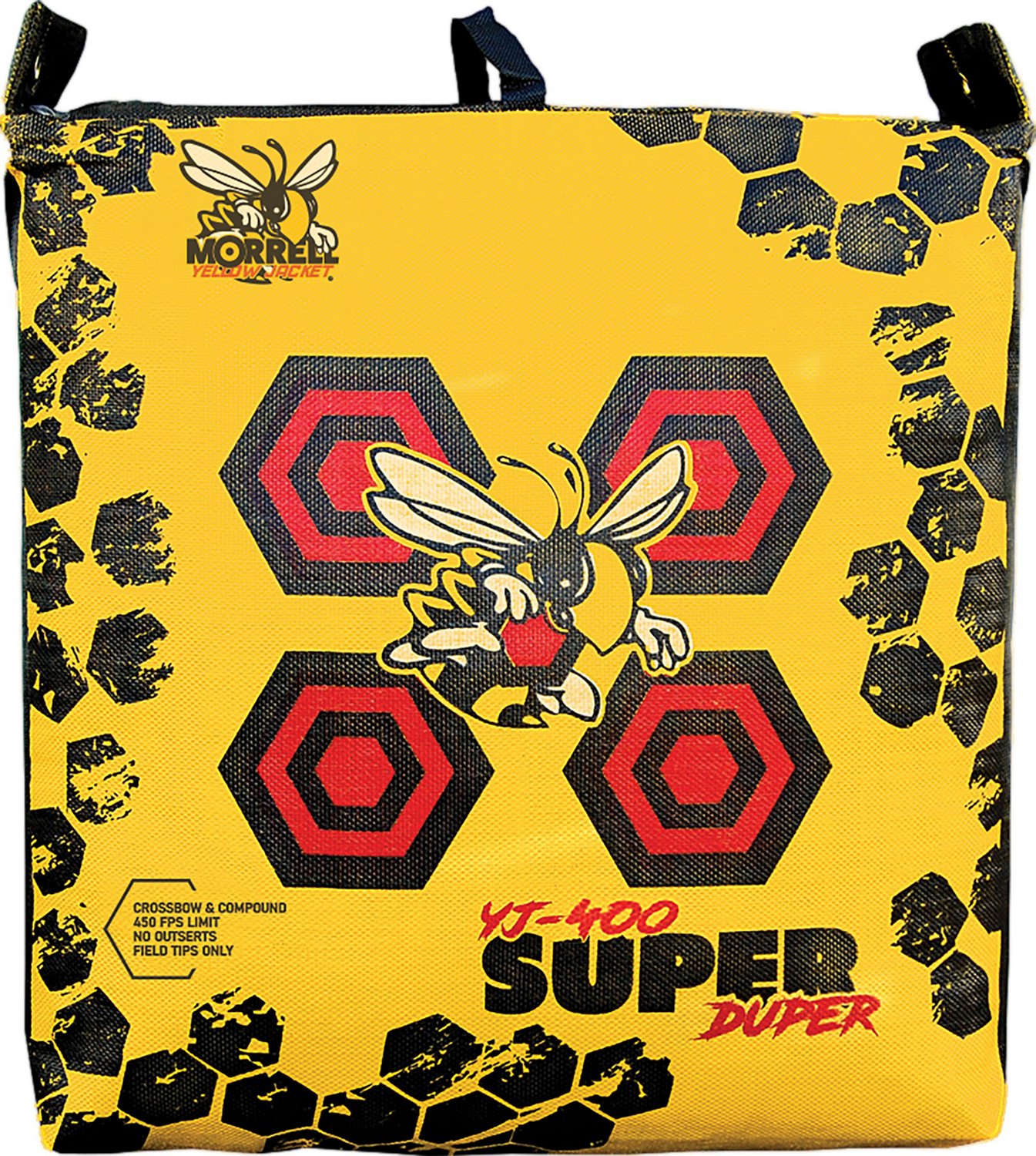 Practice your aim with your compound bow or crossbow with the Morrell YJ 400 Super Duper Archery Target. This durable target is weatherproof for reliable outdoor use and features easy arrow removal and 94 layers of stopping power. For use with field points.