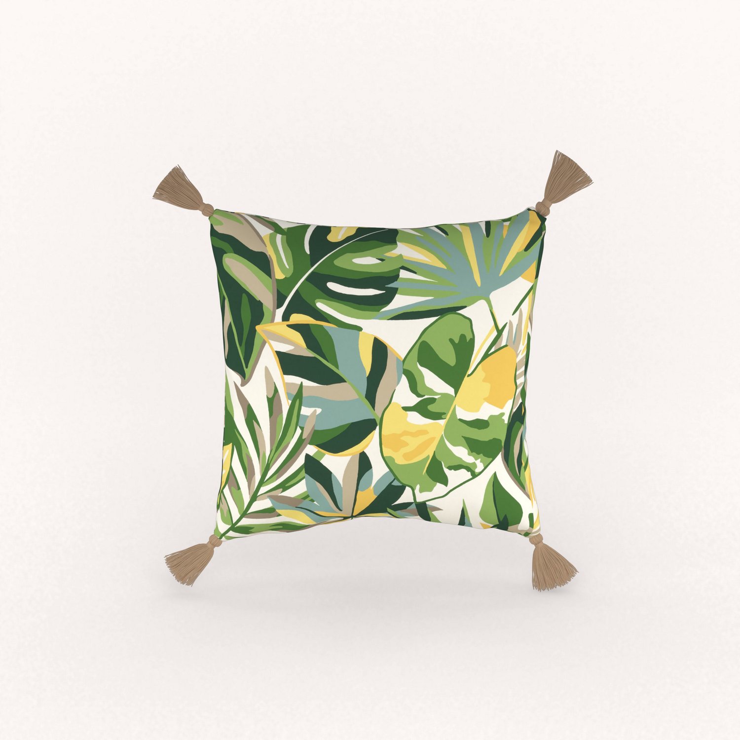 Add some comfort and style to your outdoor space with the Mosaic 16 in Patio Pillow with Corner Tassels. The 100% polyester outdoor fabric withstands wear and tear, while the 100% recycled polyester fiberfill provides a comfortable feel.