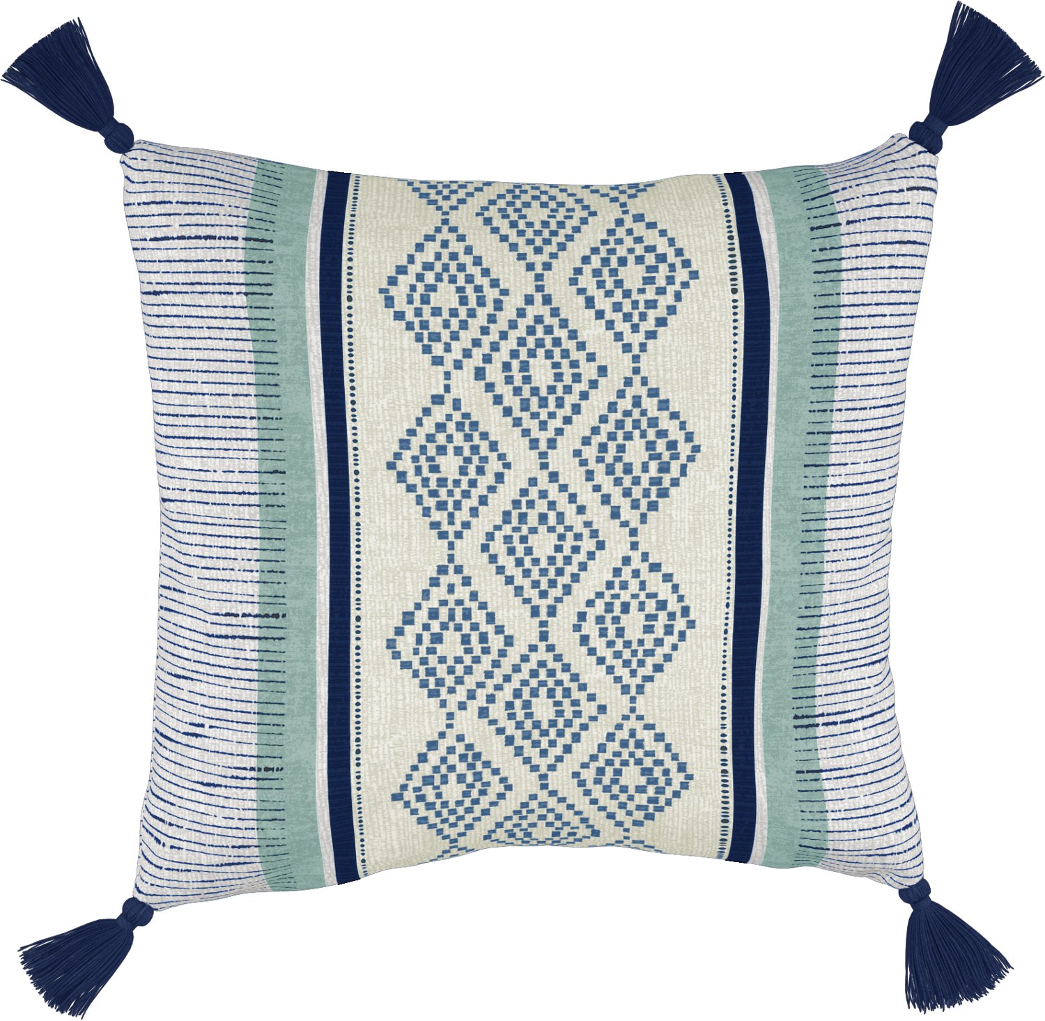 Add some comfort and style to your outdoor space with the Mosaic 18 in Patio Pillow with Corner Tassels. The 100% polyester outdoor fabric withstands wear and tear, while the 100% recycled polyester fiberfill provides a comfortable feel.