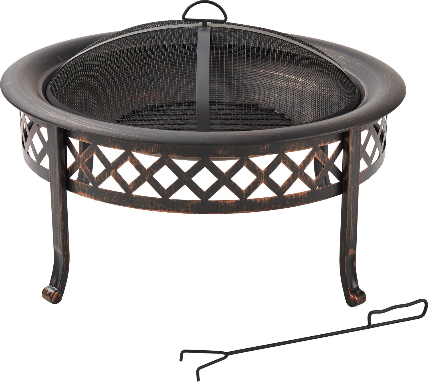 Warm up your patio during evening gatherings with the Mosaic 30 in Steel Lola Lattice Fire Pit. Crafted from solid steel to withstand high temperatures, this fire pit comes with a protective screen, poker and wood grate.