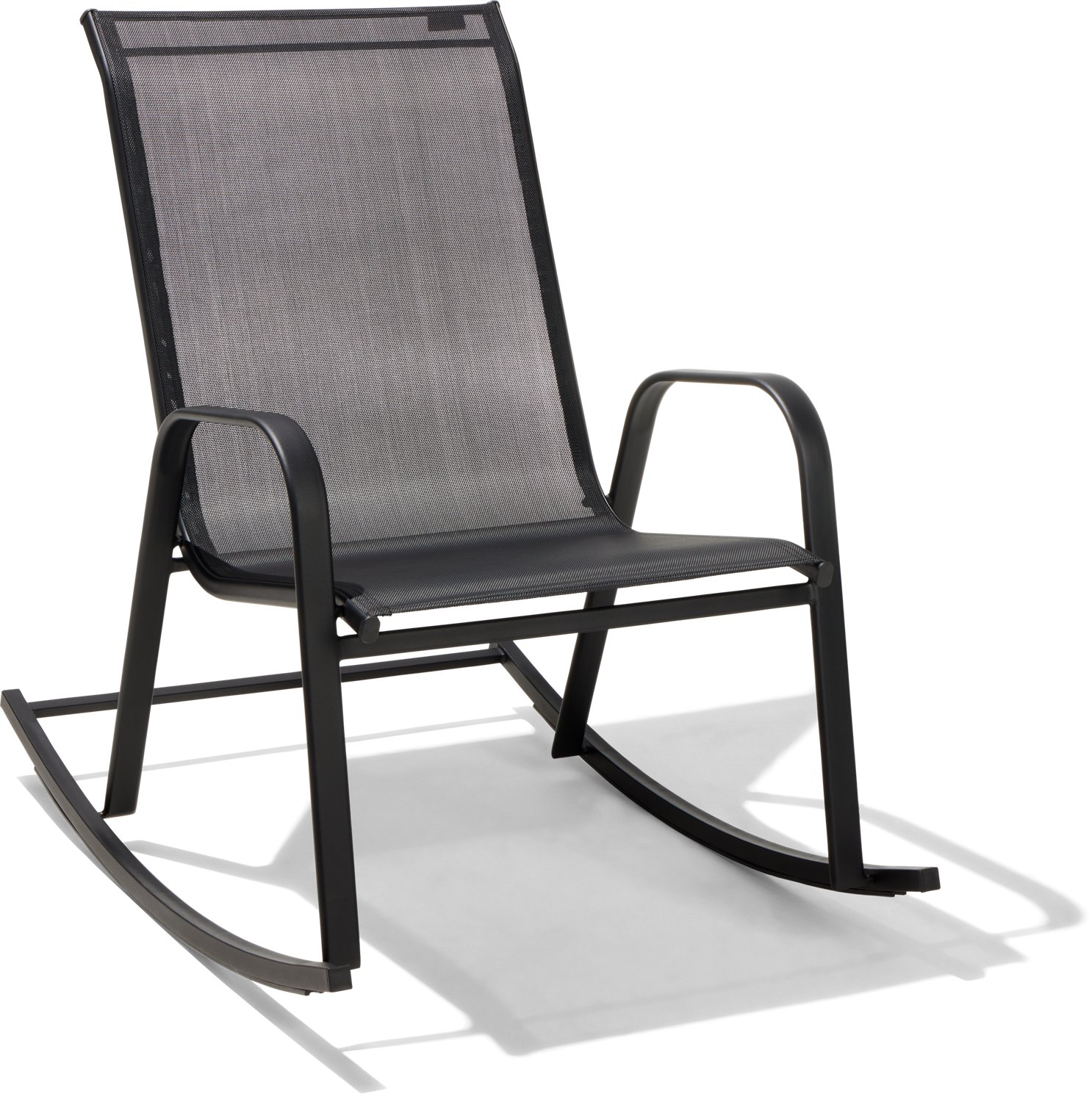 Kick back and relax with the Mosaic Livingston Oversize Sling Stack Rocker Chair. The steel frame offers durability, while woven Textilene fabric provides comfort. The chair stacks for convenient storage.
