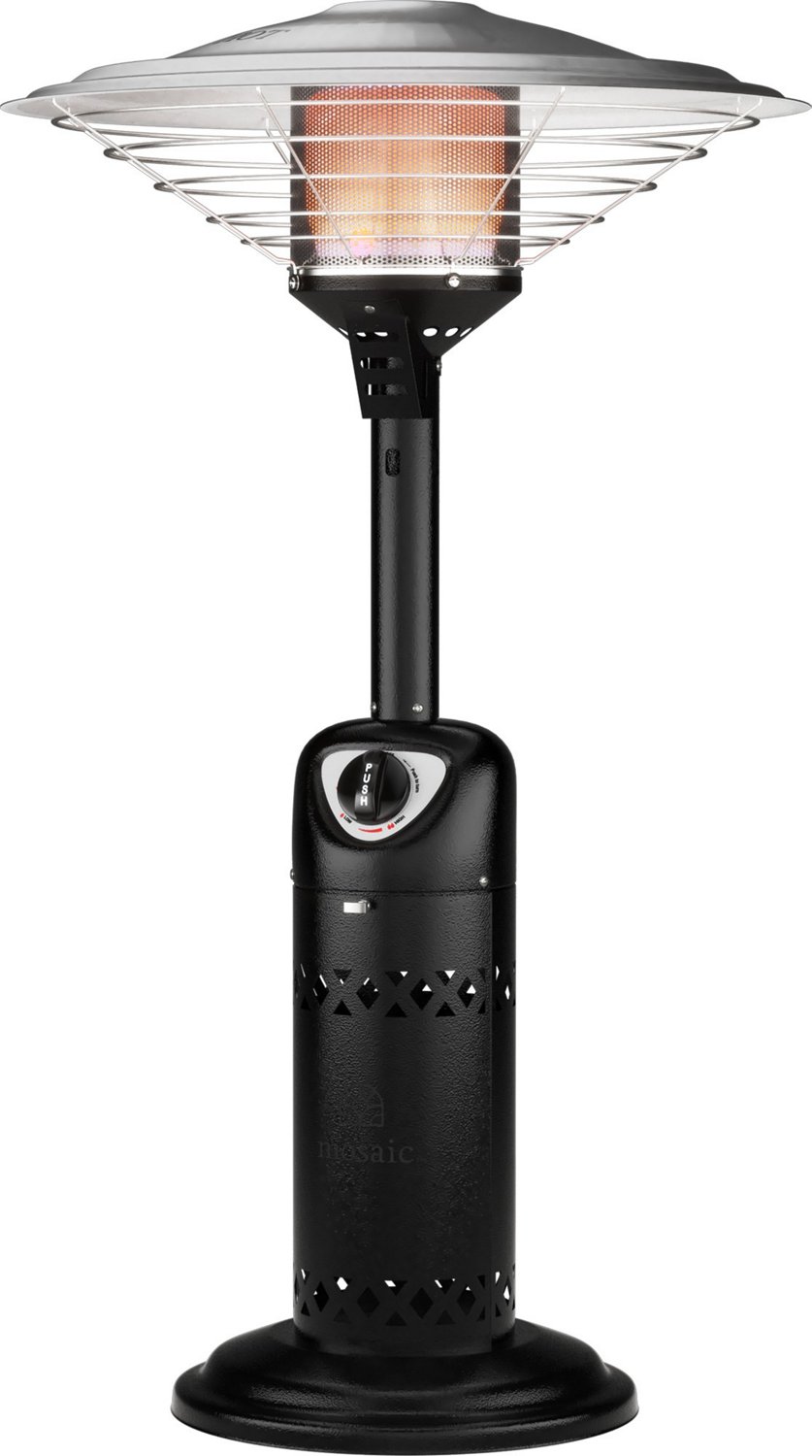 Keep enjoying the outdoors when temperatures drop with a Mosaic Table Top Patio Heater. This table top heating device features a corrosion-resistant chrome-plated screen and an aluminum deflector to spread heat over a wider area. Its stylish design complements your furnishings.