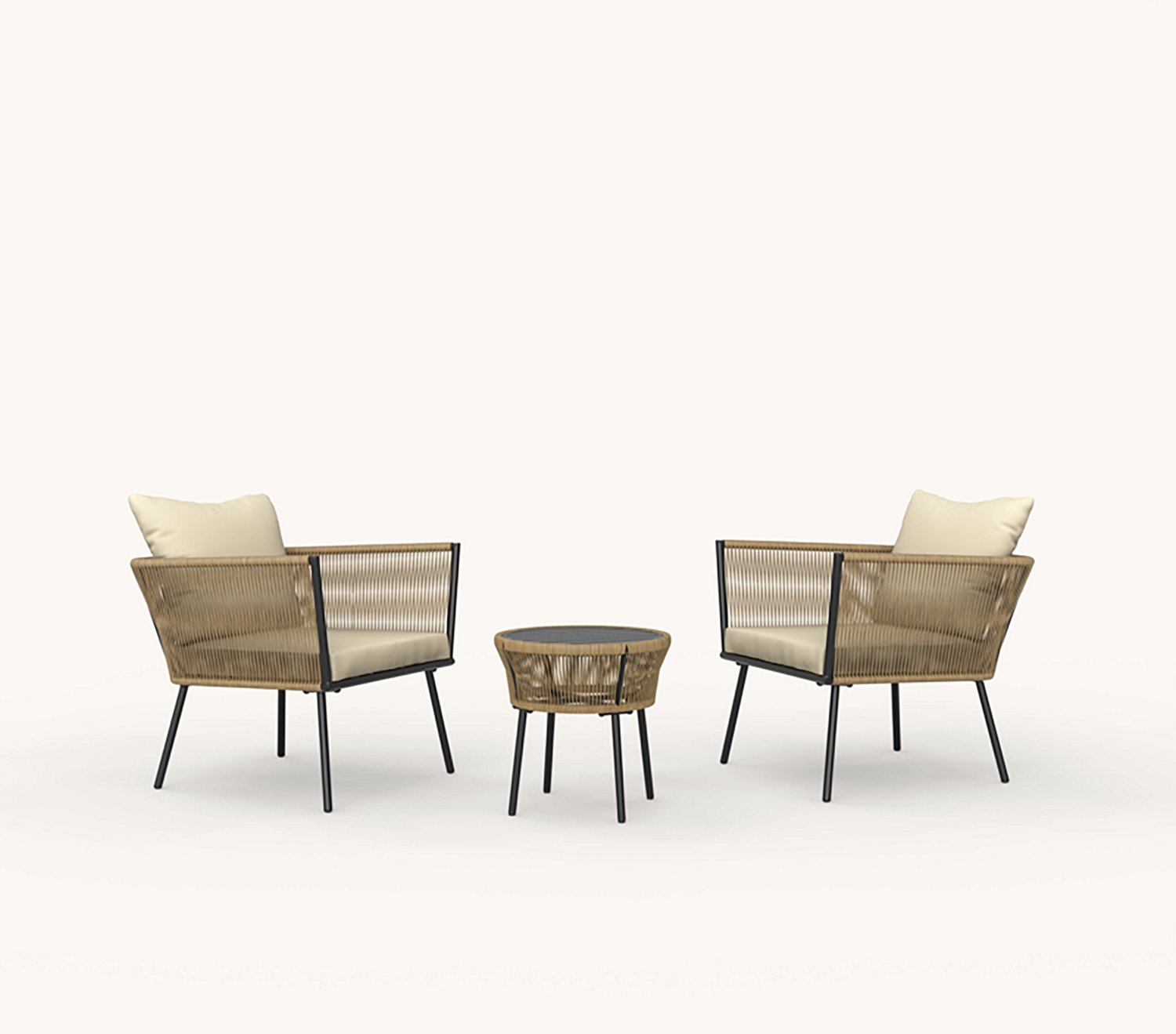 Put the finishing touches on your outdoor living space with the Mosaic Vanderwood 3-Piece Conversation Set. The PE rope wicker and powder-coat steel construction affords durability, while deep seating offers cushioned comfort. The slat tabletop allows for easy cleaning.