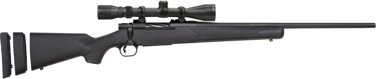 The Mossberg Youth Patriot Super Bantam Scoped Combo 350 LEGEND Rifle has a 4+1-round capacity and a polymer frame. It also includes Weaver-style bases and a 12- to 13-inch adjustable LOP.