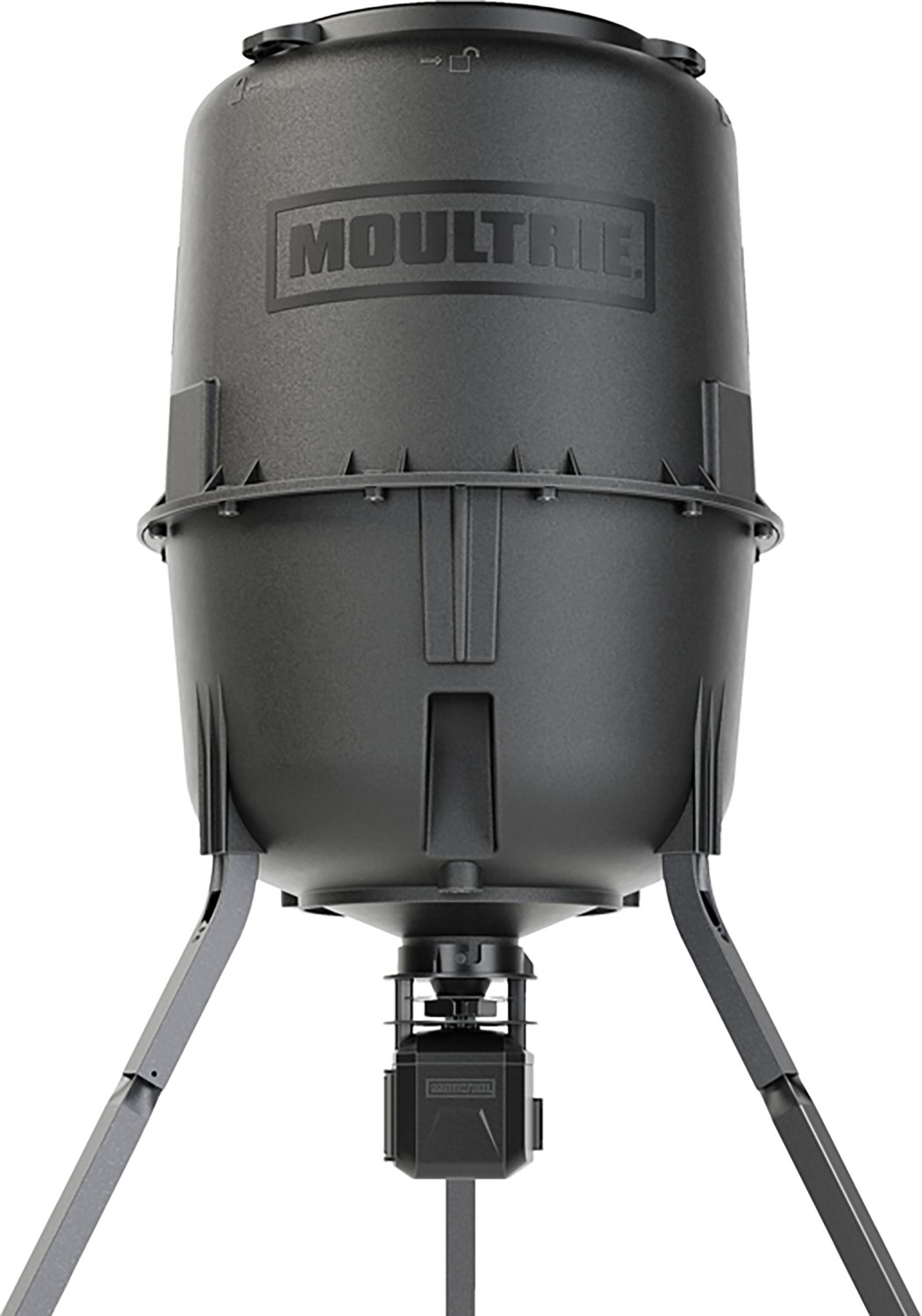 Set up your feeding area with the Moultrie 250 lb Pro III Deer Feeder. The plastic and powder-coat steel construction, while Bluetooth connectivity lets you adjust feed times and settings from your mobile device. The programmable feed times let you set up to 10 feed times per day, in 1- to 60-second intervals, and the Quick-Lock compatibility makes it easy to attach a Moultrie feeder fit .