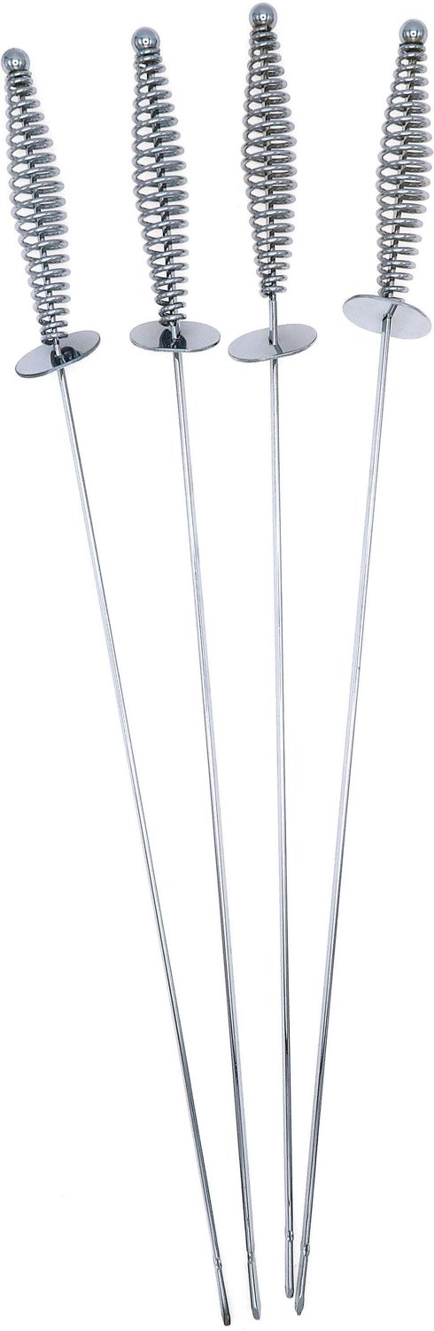 Enjoy a night of patio cooking or make a delicious camp meal with the help of the Mr. Bar-B-Q 17 in Spiral Handle Skewers 4-Pack. The spiral cool-touch handles offer a firm, comfortable grasp, and the push bars let you quickly transfer your kabobs onto a plate. The flat body secures food in place while you adjust it over the flame.