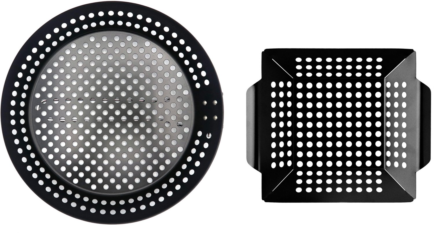 Serve up a flavorful meal with the Mr. Bar-B-Q Grill Topper Set, which includes a skillet and a mini wok. The nonstick surface keeps food from slipping through the grill grates, and the skillet handle locks and folds for easy storage.