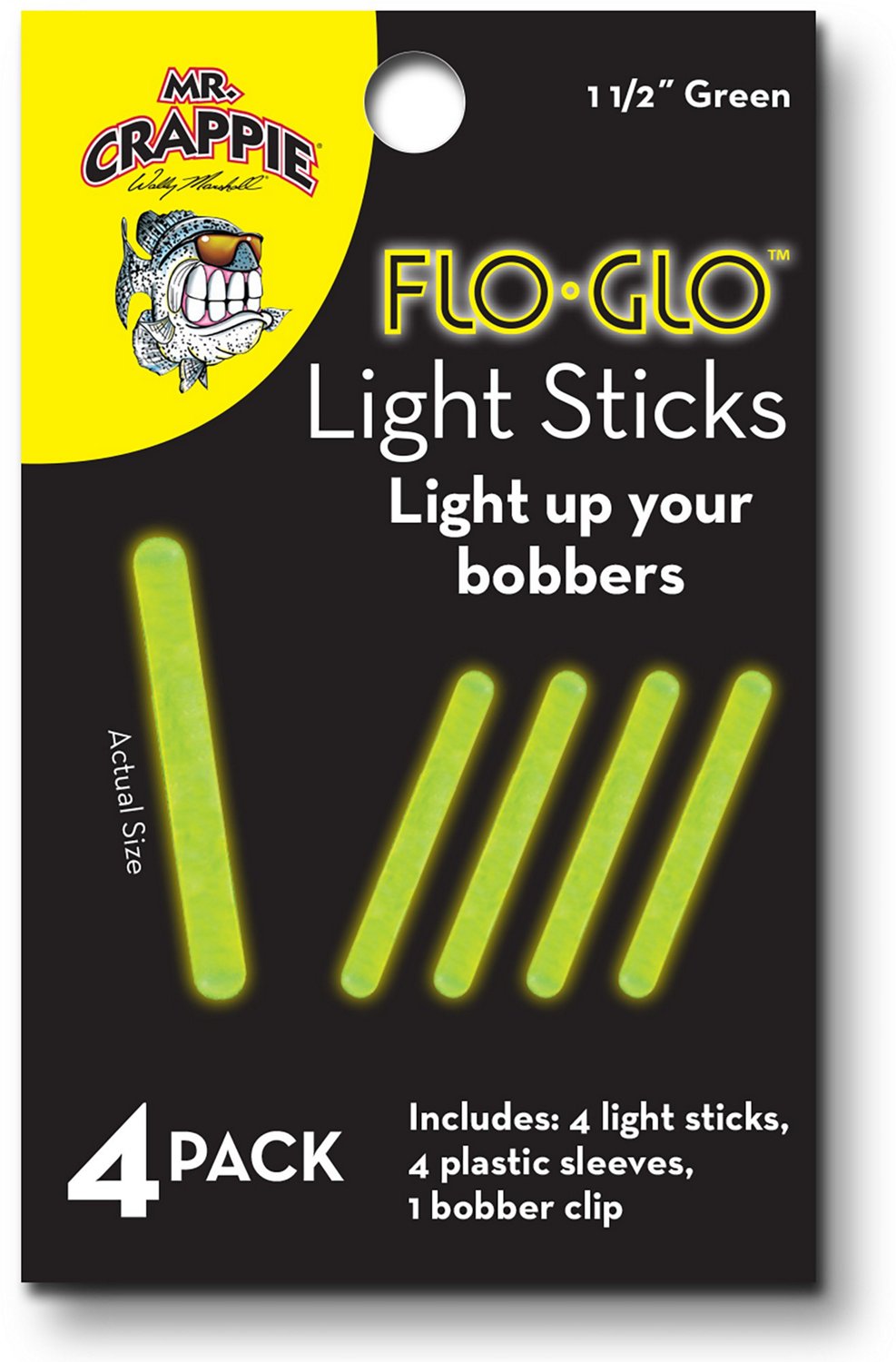 Light up your line with the Mr. Crappie Flo Glo Light Sticks 4-Pack. The light sticks improve the visibility of your lures and bobbers, helping you see them from further out.