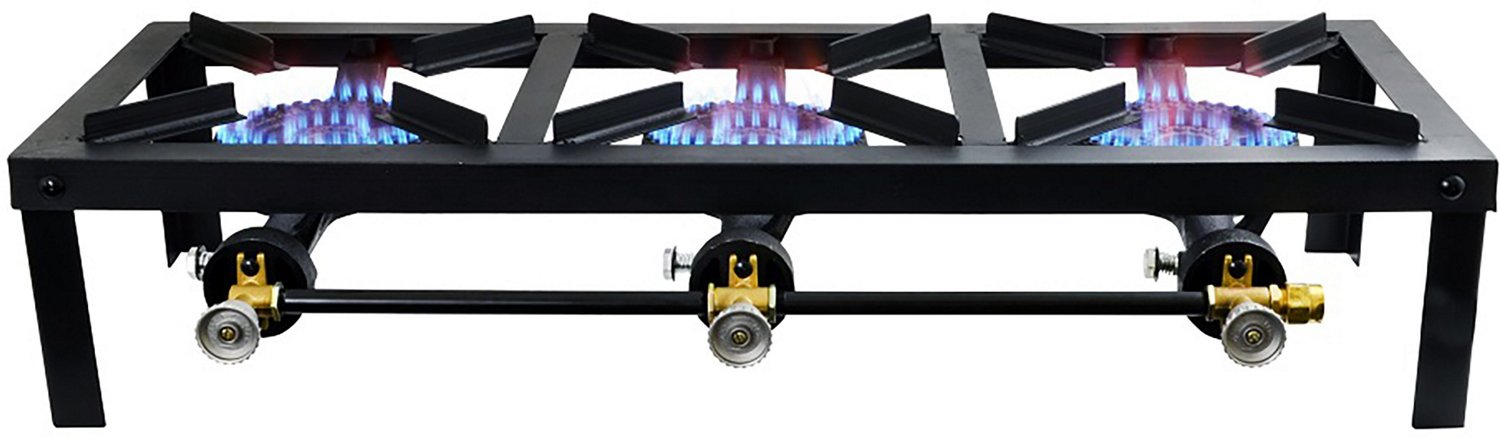 3 heavy duty 15,000 BTU burners deliver up to 45,000 BTUs of power