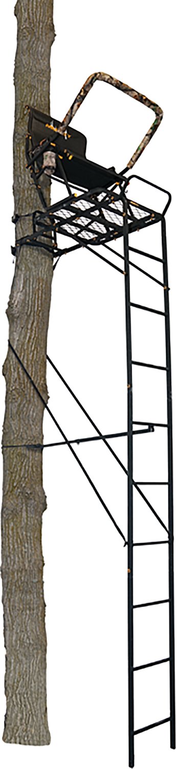 Quietly look for game in nature with the Muddy Outdoors The Boss Hawg 1.5. Ladderstand. The padded shooting rest muffles sound, and the structure is made with silencer technology to create little or no noise. The powder-coated steel construction is built for long-term use, and the seat gives you ample room to sit and check for wildlife.
