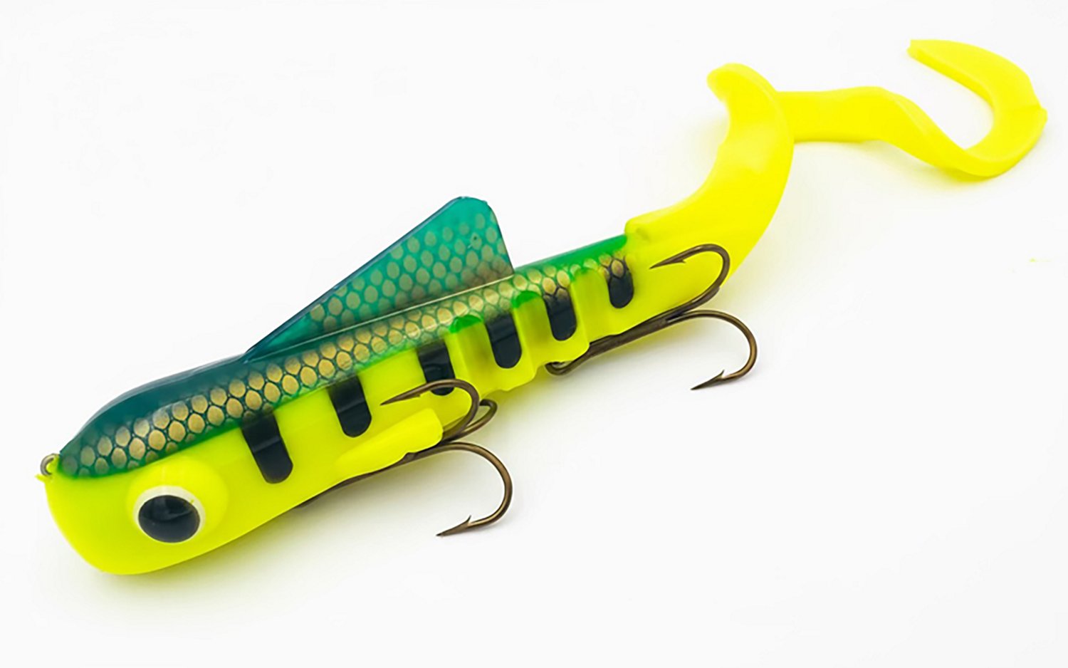 Get ready for your next fishing trip with the Musky Innovation Bull Dawg Soft Plastic Swimbait. This swimbait is ideal for walleye fishing, while the two 3/0 hooks offer secure attachment.