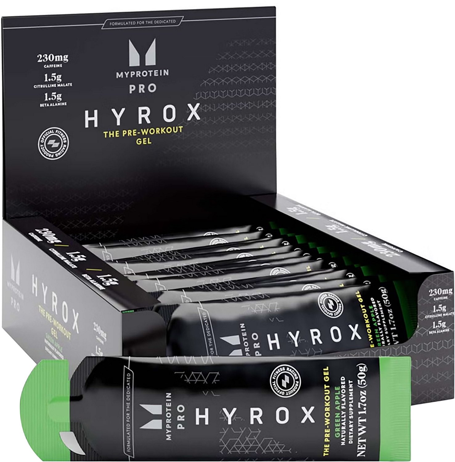Take on challenging days with help from the MyProtein HYROX 50 g Sour Cherry Pre-Workout Gel - Singles. This gel includes B vitamins and other ingredients that help boost your performance, and the 230 milligrams of caffeine are designed to release slowly to last even longer.