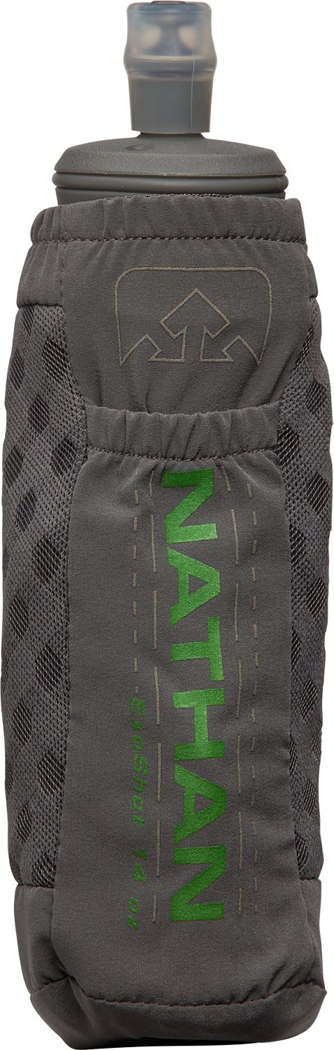 Drink easily on the go with the Nathan ExoShot 2 14 oz Flask. This flask has a rigid spine , moisture-wicking mesh and an integrated hand strap that make it easy to carry and bring with you. The bite valve makes it easy to sip while moving, and you can remove the sleeve to slip this flask into any one of Nathan's hydration vest pockets.