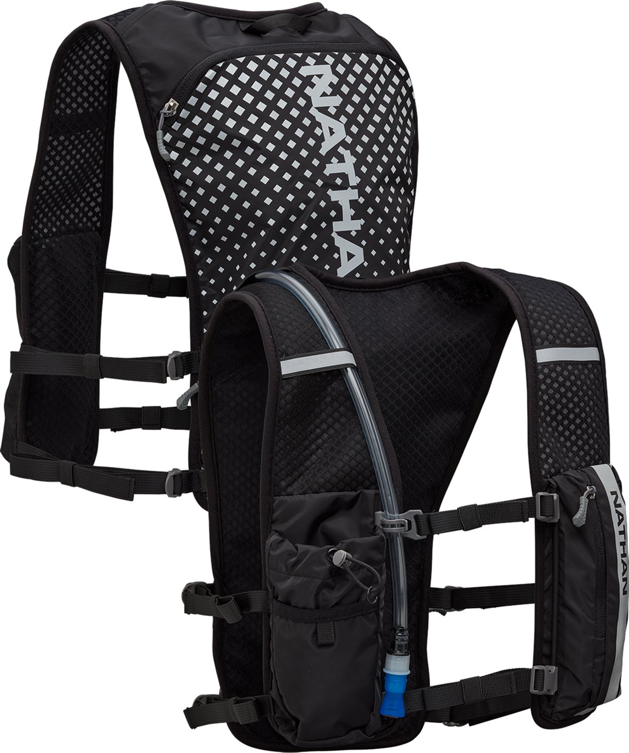 Stay hydrated on your run with the Nathan Hypernight Quick Start 2.0 4L Hydration Pack. The main compartment holds hydration bladders up to 1.5 liters, while the front storage pocket stashes snacks and most large format smartphones. The adjustable front and side straps allow for secure carrying, and the soft perimeter binding helps prevent chafing.