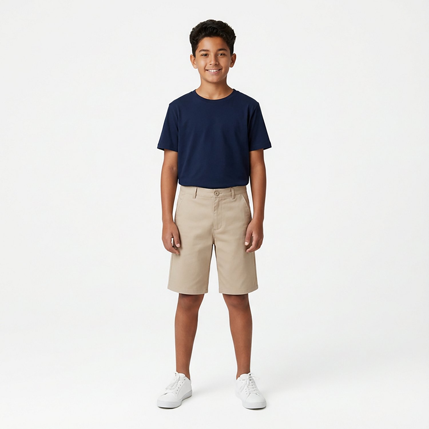 Start the school day right with the Nautica Boys' FF Twill Shorts. The cotton and polyester material provides a comfortable feel, while the flat front design offers a stylish look.