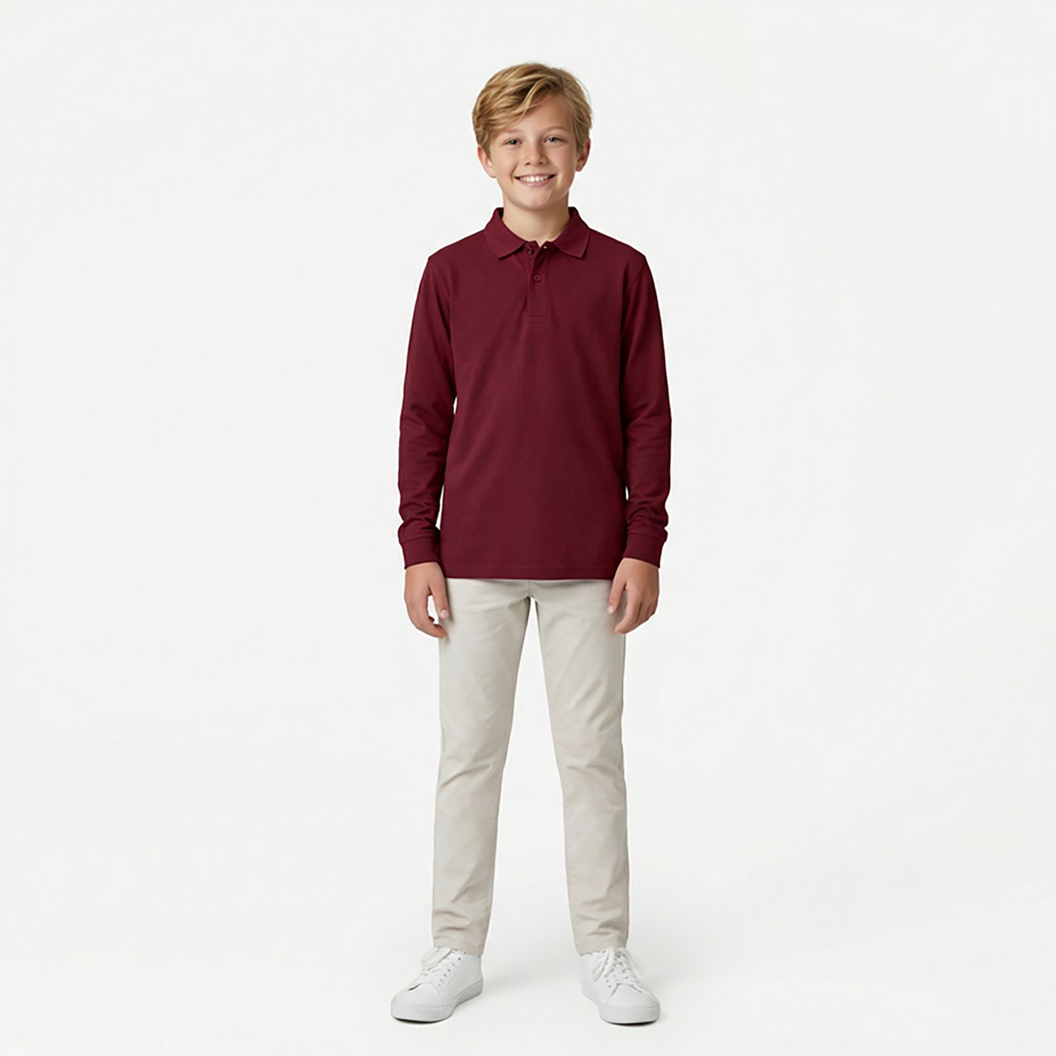 Nautica Boys' Husky Double Pique Long Sleeve Polo Shirt