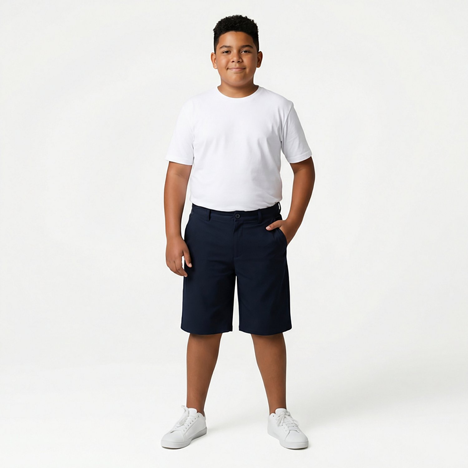 Features and Benefits 100% polyester material provides comfort Side and back pockets Zippered closure Belt loops offer a custom fit Machine wash cold Specifications Compression: No Clothing Type: School Uniforms Ventilated: No Activity: School Material: Polyester Gender: Boys' Size Range: Boys' (4 - 7) Moisture Wicking: No Water Resistant: No Product Type: Shorts Flame Resistant: No Age Group: Kids' Style: Athletic Shorts Lining: No What's in the Box Nautica Boys' Performance Shorts