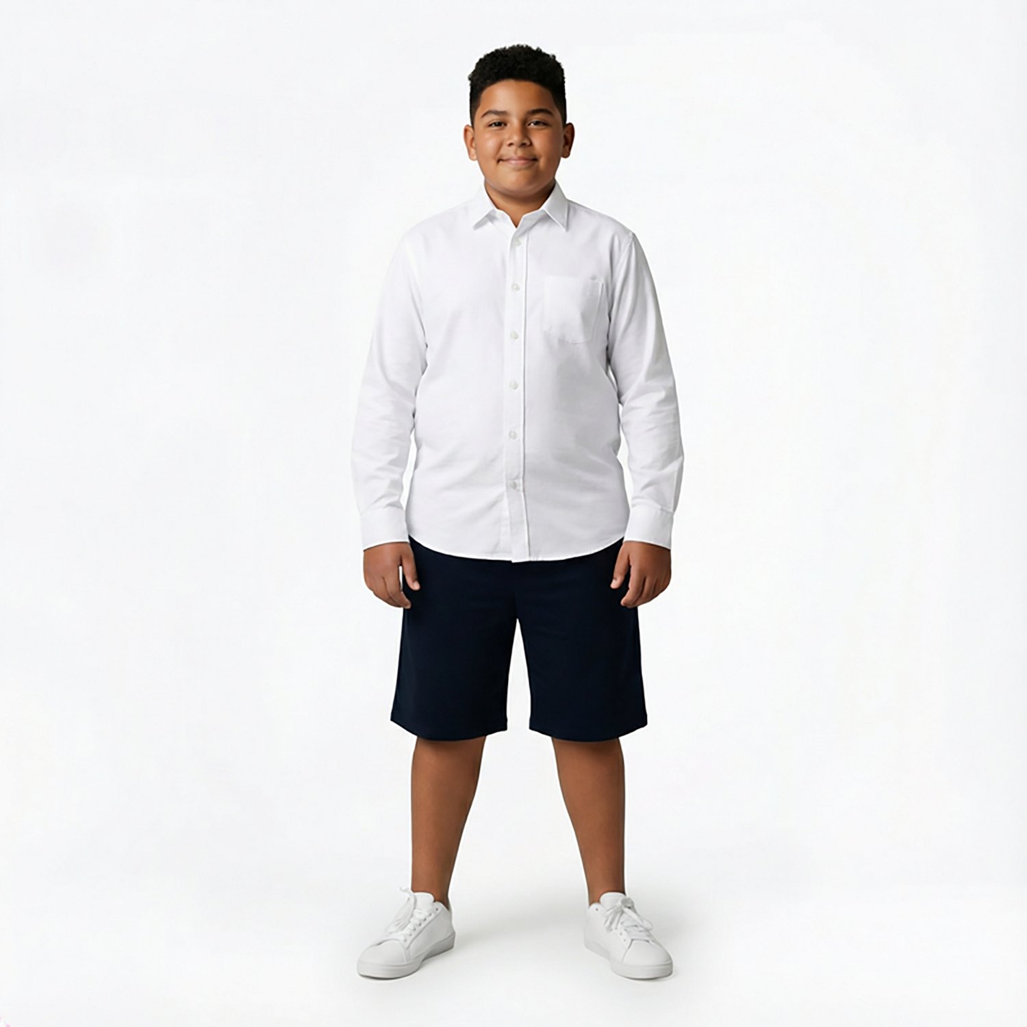 Keep school days simple with the Nautica Boys' Synthetic Woven Long Sleeve Shirt. The woven fabric provides enough stretch to keep him mobile, while moisture-wicking fibers help him stay fresh throughout the day. The point collar and chest pocket add a classy look.