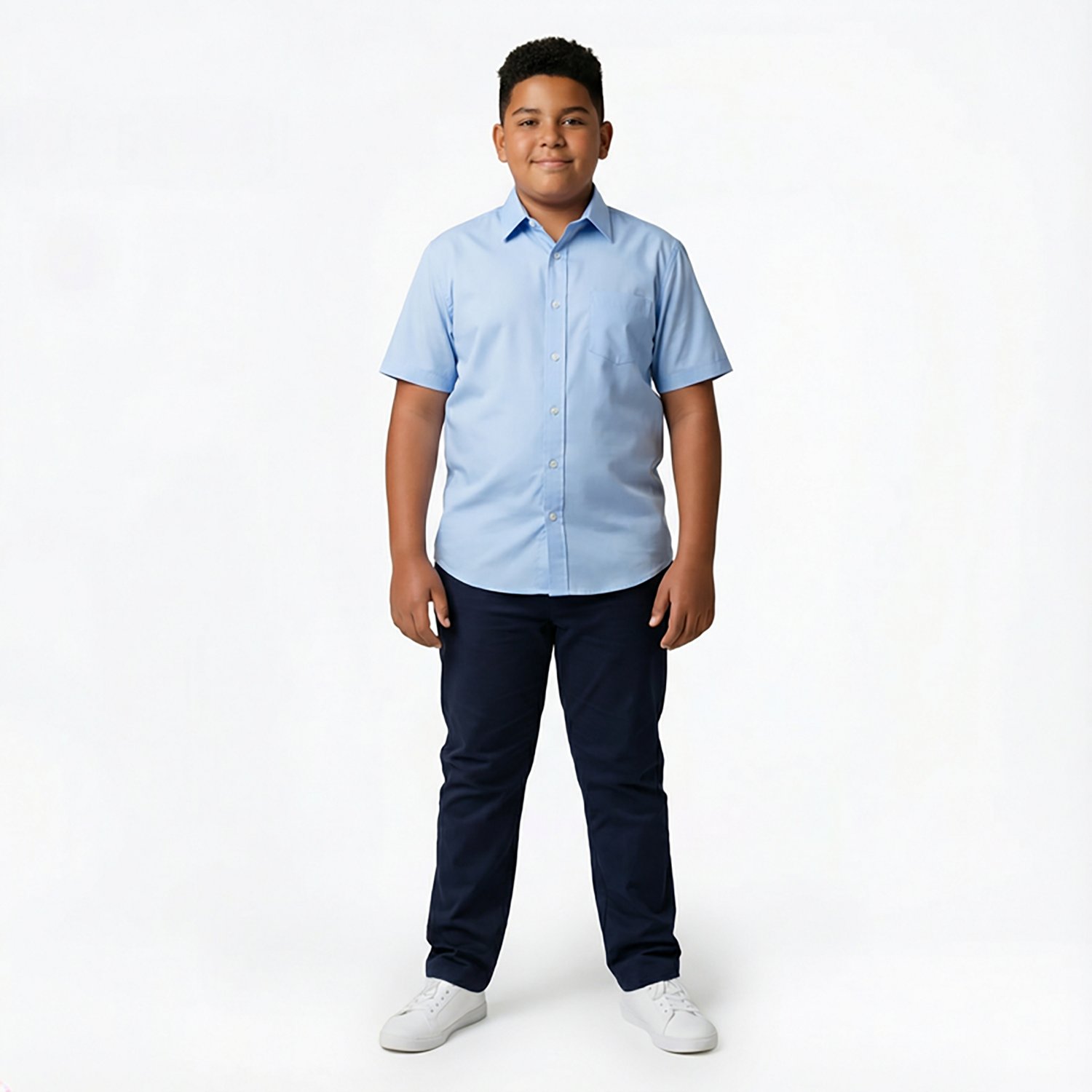 Keep school days simple with the Nautica Boys' Synthetic Woven Short Sleeve Shirt. The woven fabric provides enough stretch to keep him mobile, while moisture-wicking fibers help him stay fresh throughout the day. The point collar and chest pocket add a classy look.