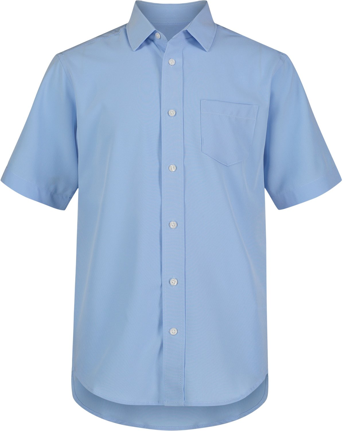 Keep school days simple with the Nautica Boys' Synthetic Woven Short Sleeve Shirt. The woven fabric provides enough stretch to keep him mobile, while moisture-wicking fibers help him stay fresh throughout the day. The point collar and chest pocket add a classy look.