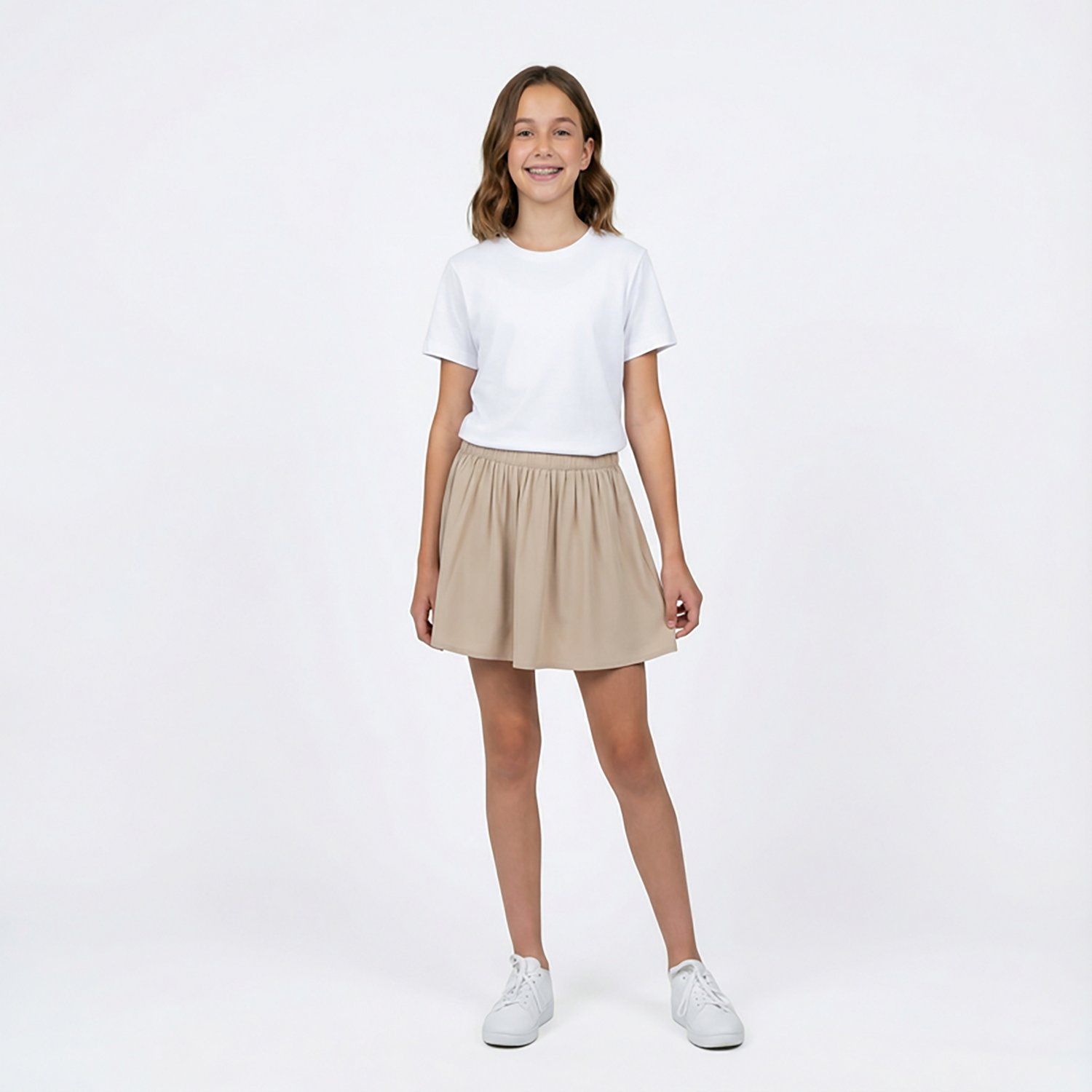 Look good when you head to school wearing the Nautica Girls' 4-7 Rayon Scooter Skort. The 100% rayon construction feels soft on your skin, and the encased elastic waistband flexes with your movements. The shorts beneath make sure you stay covered and comfortable, and this skort is school-uniform approved.