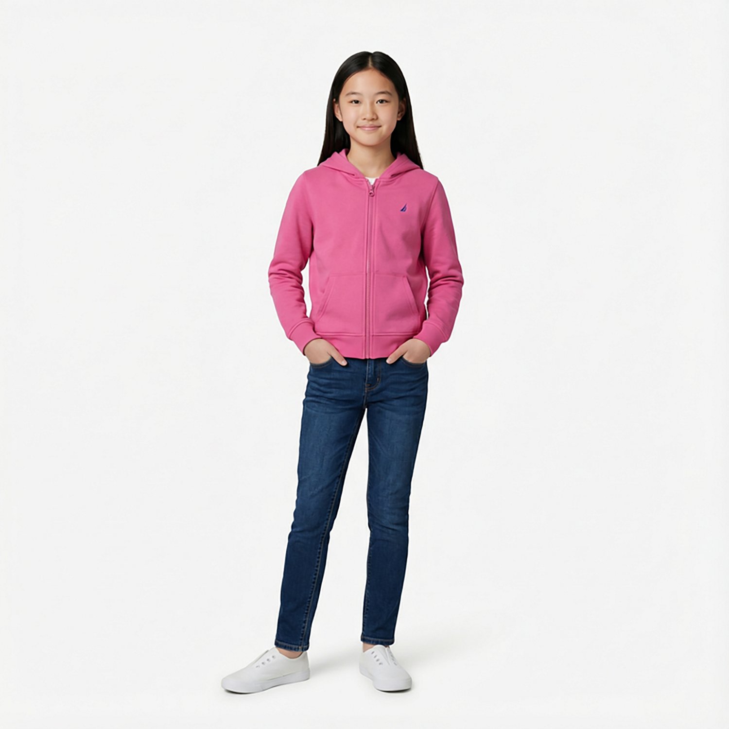 When it comes to picking your school uniform, the Nautica Girls' 7-20 Fleece FZ Hoodie is a great addition. Made with cotton and polyester, this hoodie comes with split kangaroo pockets for added warmth on chilly days. The hoodie also features a logo at the left chest for a touch of style.