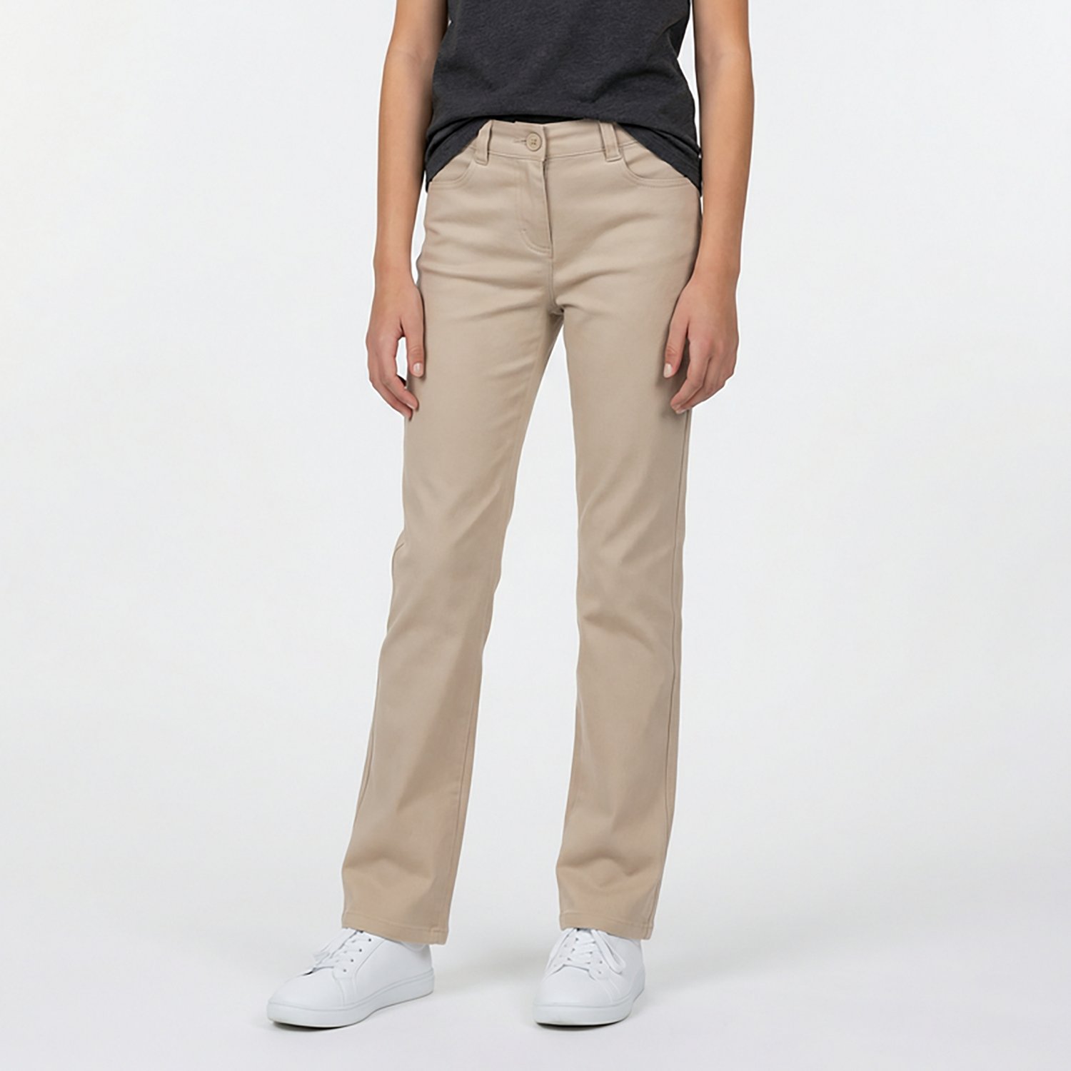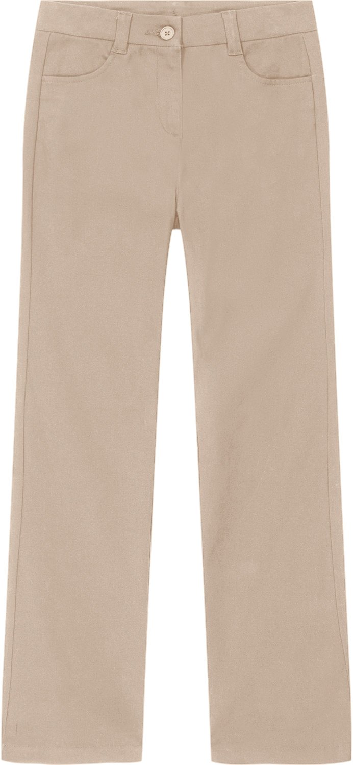 For comfort throughout the school day, wear the Nautica Girls' 8-20 High-Waisted Bootcut Twill Plus Size Pants. Made of cotton and spandex, these pants come with a high-waisted design for coverage. The pants also feature four pockets; two scoop pockets and two back patch pockets.