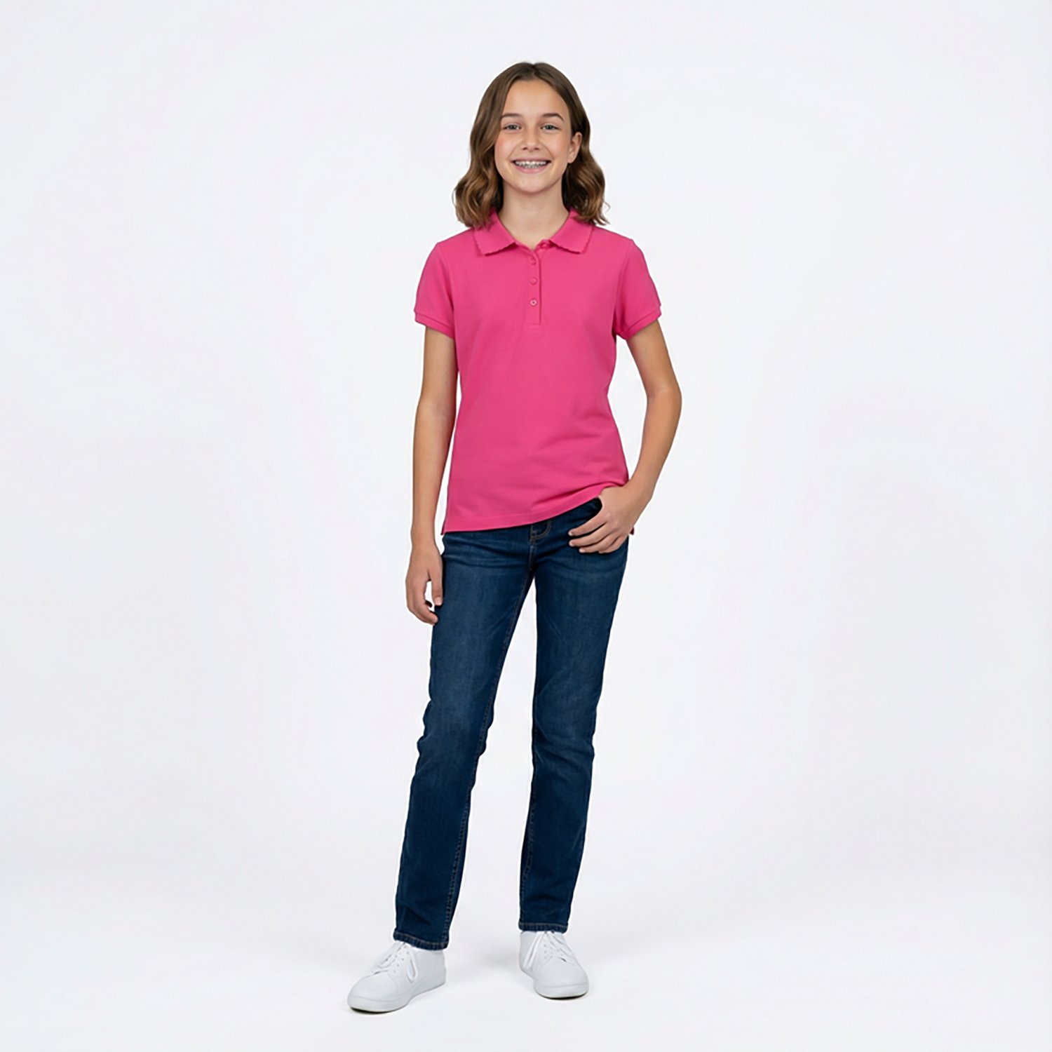 Slip into the Nautica Girls' Interlock Polo Shirt and take on your school day. A cotton/polyester construction ensures comfort, while the side slits flex and move with your body. A 4-button placket and rubbed collar highlight your style.