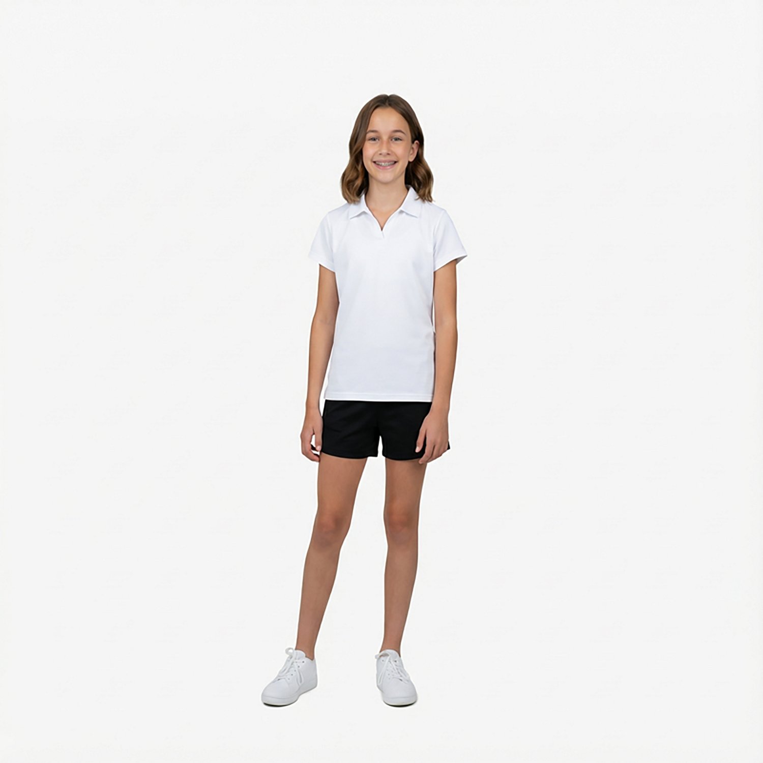 Help her look her best at school with the Nautica Girls' Performance Short Sleeve Polo. The high-performance fabric resists fading, wrinkling and shrinkage for long-lasting wear. It also wicks away sweat to keep her fresh. The open placket and curved hem create a stylish look perfect for school.